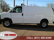 ABS, 4-Wheel Disc Brakes, A/C, A/T, Transmission w/Dual Shift Mode, Power Outlet, Back-Up Camera, Bucket Seats, Daytime Running Lights, Driver Air Bag, Stability Control, Gasoline Fuel, Heated Mirrors, Intermittent Wipers, Passenger Air Bag, Passenger Air Bag On/Off Switch, Power Door Locks, Power Mirror(s), Power Steering, Power Windows, Rear Wheel Drive, Requires Subscription, Front Side Air Bag, Front Head Air Bag, Steel Wheels, Tire Pressure Monitor, Tires - Front All-Season, Tires - Rear All-Season, Traction Control, Transmission Overdrive Switch, Trip Computer, V6 Cylinder Engine, Immobilizer, WiFi Hotspot, Bumpers, front and rear painted Black with step-pad, Door, swing-out passenger-side, 60/40 split, Glass, Solar-Ray light-tinted, all windows, Headlamps, dual halogen composite, License plate kit, front, Mirrors, outside heated power-adjustable, Black, manual-folding, Tire, spare LT245/75R16 all-season, blackwall located at rear underbody of vehicle, Tires, front LT245/75R16E all-season, blackwall, Tires, rear LT245/75R16E all-season, blackwall, Wheels, 4 - 16" x 6.5" (40.6 cm x 16.5 cm) steel includes Gray center caps and steel spare, Wipers, front intermittent wet-arm with pulse washers, Air conditioning, single-zone manual, Assist handles, driver and right-front passenger, Cargo tie-downs 6 D-ring attachments on cargo area floor (Not available with (Y3H) Paratransit Package or (ZP6) 5-passenger Savana Crew Van.), Console, engine cover with open storage bin, Cup holders, 3 on the engine console cover, Defogger, side windows, Door locks, power with lock-out protection (Included with (ZQ2) Power Convenience Package. NOTE: Does not include (ATG) Remote Keyless Entry. (ATG) Remote Keyless Entry must be ordered separately.), Driver Information Center includes fuel range, average speed, oil life, tire pressure monitoring, fuel used, ice warning, engine hours, average fuel economy, tachometer, and maintenance reminders. Compass and outside temperature available if equipped., Floor covering, full-length Black rubberized-vinyl (Not available with (RFM) rear floor covering delete or (PCH) Hotel Shuttle Package.), GMC Connected Access capable (Included and only available with (UE1) OnStar. Subject to terms. See onstar.com or dealer for details.), Headliner, cloth, over driver and passenger, Instrumentation, analog with speedometer, odometer with trip odometer, fuel level, voltmeter, engine temperature and oil pressure, Lighting, interior with 4 dome lights 1 overhead and 3 LED's on cross members in cargo area, includes defeat switch and door handle-activated switches, Mirror, inside rearview includes Rear Vision Camera display, Oil life monitor, Power outlet, 120-volt, Power outlets, 2 auxiliary on engine console cover with covers, 12-volt, Seating arrangement, driver and front passenger high-back buckets with head restraints and vinyl or cloth trim (Not available with (AJ3) driver-side only frontal airbag.), Seats, front bucket with vinyl trim and head restraints, includes inboard armrests (Requires (**W) interior trim.), Steering wheel, steel sleeve column with theft-deterrent locking feature, Black, Theft-deterrent system, vehicle, PASS-Key III, Tow/haul mode selector, instrument panel-mounted, Trim panels, hinged rear side doors and hinged rear doors (Not available with (Y3H) Paratransit Package.), Visors, driver and front passenger, vinyl, Warning tones, headlamp on and key-in-ignition, Windows, power (Included with (ZQ2) Convenience Package.), Alternator, 105 amps (Not available with (Y3H) Paratransit Package, (C69) rear air conditioning, (9L7) Wiring junction block equipment accessory or (LWN) 2.8L Duramax Turbo-Diesel engine.), Battery, 600 cold-cranking amps, maintenance-free with rundown protection and retained accessory power, Body, standard, Brakes, 4-wheel antilock, 4-wheel disc, Cooling, external engine oil cooler (Not available with (LWN) 2.8L Duramax Turbo-Diesel engine.), Engine, 4.3L V6 with Direct Injection and Variable Valve Timing, includes aluminum block construction (276 hp [206 kW] @ 5200 rpm, 298 lb-ft of torque [404 Nm] @ 3900 rpm) (Reference the Engine/Axle page for availability.), Exhaust, aluminized stainless-steel muffler and tailpipe, Frame, full-length box ladder-type, Fuel tank capacity, mid-frame and approximately 31 gallons (117.3L), GVWR, 8600 lbs. (3901 kg) (Reference the Engine/Axle page for availability.), Rear axle, 3.42 ratio (Reference the Engine/Axle page for availability.), Rear wheel drive, Steering, power, , Suspension, front independent with coil springs and stabilizer bar, Suspension, rear hypoid drive axle with multi-leaf springs, Transmission, 8-speed automatic, electronically controlled with overdrive and tow/haul mode. Includes Cruise Grade Braking, Powertrain Grade Braking and Tap-Up/Tap-Down Driver Shift Control (Requires (LV1) 4.3L gas V6 engine. Reference the Engine/Axle page for availability.), Airbag deactivation switch, frontal passenger-side (Not available with (AJ3) driver only airbag. Always use seat belts and child restraints. Children are safer when properly secured in a rear seat in the appropriate child restraint. See the Owner's Manual for more information.), Airbags, frontal, front driver and right front passenger includes passenger-side frontal airbag deactivation switch. (Included with (ZX2) driver and right-front passenger high-back bucket seats or (ZP6) 5-passenger Savana Crew Van Package. Not available with (ZX1) driver only high-back bucket seat or (AJ3) driver-side only frontal airbag. Always us, Airbags, seat-mounted side-impact for driver and right-front passenger and roof-rail mounted head-curtain for 1-row coverage with (ZX1) driver only high-back bucket seat or (ZX2) driver and right-front passenger high-back bucket seats, and 2-row coverage with (ZP6) 5-passenger Savana Crew Van Package (Always use seat belts and child restraints. Chi, Brake/transmission shift interlock, for automatic transmissions, Daytime R