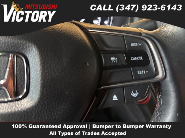8 Speakers, AM/FM radio: SiriusXM, Radio data system, Radio: 180-Watt HD Audio System, Air Conditioning, Automatic temperature control, Front dual zone A/C, Rear window defroster, Power driver seat, Power steering, Power windows, Remote keyless entry, Steering wheel mounted audio controls, Four wheel independent suspension, Speed-sensing steering, Traction control, 4-Wheel Disc Brakes, ABS brakes, Dual front impact airbags, Dual front side impact airbags, Emergency communication system: HondaLink, Front anti-roll bar, Knee airbag, Low tire pressure warning, Occupant sensing airbag, Overhead airbag, Rear anti-roll bar, Brake assist, Electronic Stability Control, Forward collision: Collision Mitigation Braking System (CMBS) + FCW mitigation, Lane Departure Warning System, Exterior Parking Camera Rear, Auto High-beam Headlights, Delay-off headlights, Front fog lights, Fully automatic headlights, Panic alarm, Security system, Adaptive Cruise Control: Adaptive Cruise Control (ACC) with Low-Speed Follow, Speed control, Bumpers: body-color, Heated door mirrors, Power door mirrors, Apple CarPlay/Android Auto, Driver door bin, Driver vanity mirror, Front reading lights, Illuminated entry, Leather steering wheel, Outside temperature display, Overhead console, Passenger vanity mirror, Rear seat center armrest, Telescoping steering wheel, Tilt steering wheel, Trip computer, Fabric w/Synthetic Leather Seat Trim, Front Bucket Seats, Front Center Armrest, Heated front seats, Split folding rear seat, Passenger door bin, Alloy wheels, Wheels: 19" Machine-Finished Alloy w/Black Inserts, Speed-Sensitive Wipers, Variably intermittent wipers,