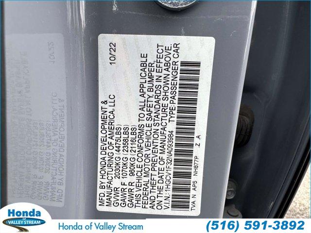 For more information on this 2022 Honda Accord, please call Honda of Valley Stream at (516) 591-3892 or with the contact form on this page. This vehicle's vin number is 1HGCV1F32NA093984 and is recorded as being in stock at Honda of Valley Stream at 164 E. Sunrise Highway in Valley Stream. See all cars from this dealership.
