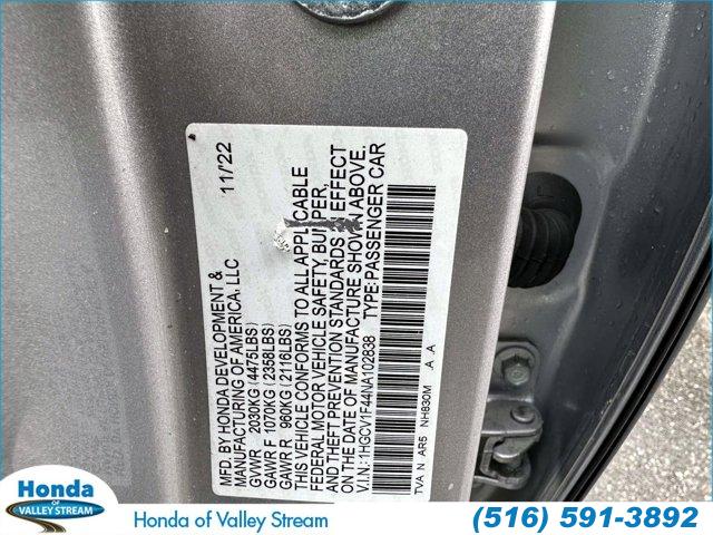 For more information on this 2022 Honda Accord, please call Honda of Valley Stream at (516) 591-3892 or with the contact form on this page. This vehicle's vin number is 1HGCV1F44NA102838 and is recorded as being in stock at Honda of Valley Stream at 164 E. Sunrise Highway in Valley Stream. See all cars from this dealership.