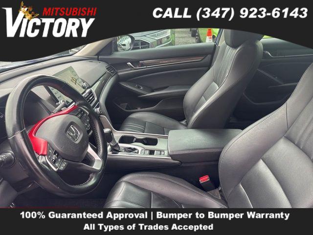 8 Speakers, AM/FM radio, Radio data system, Radio: 180-Watt AM/FM Audio System, Air Conditioning, Automatic temperature control, Front dual zone A/C, Rear window defroster, Power driver seat, Power steering, Power windows, Remote keyless entry, Steering wheel mounted audio controls, Four wheel independent suspension, Speed-sensing steering, Traction control, 4-Wheel Disc Brakes, ABS brakes, Dual front impact airbags, Dual front side impact airbags, Emergency communication system: HondaLink, Front anti-roll bar, Knee airbag, Low tire pressure warning, Occupant sensing airbag, Overhead airbag, Rear anti-roll bar, Brake assist, Electronic Stability Control, Forward collision: Collision Mitigation Braking System (CMBS) + FCW mitigation, Lane Departure Warning System, Exterior Parking Camera Rear, Auto High-beam Headlights, Delay-off headlights, Front fog lights, Fully automatic headlights, Panic alarm, Security system, Adaptive Cruise Control: Adaptive Cruise Control (ACC) with Low-Speed Follow, Speed control, Bumpers: body-color, Heated door mirrors, Power door mirrors, Spoiler, Apple CarPlay/Android Auto, Driver door bin, Driver vanity mirror, Front reading lights, Illuminated entry, Leather Shift Knob, Leather steering wheel, Outside temperature display, Overhead console, Passenger vanity mirror, Rear seat center armrest, Tachometer, Telescoping steering wheel, Tilt steering wheel, Trip computer, Front Bucket Seats, Front Center Armrest, Heated Front Bucket Seats, Heated front seats, Perforated Leather Seat Trim, Power passenger seat, Split folding rear seat, Passenger door bin, Alloy wheels, Wheels: 19" Machine-Finished Alloy w/Black Inserts, Speed-Sensitive Wipers, Variably intermittent wipers,