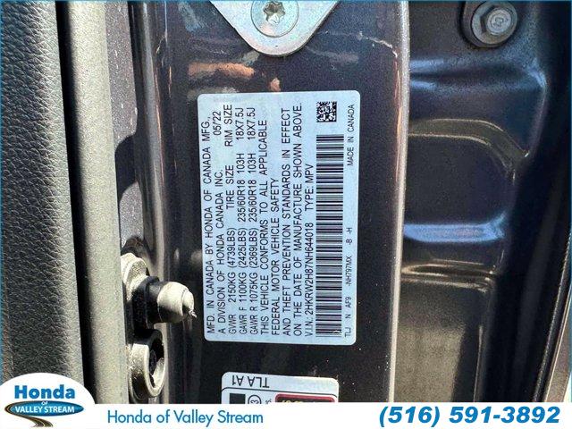 For more information on this 2022 Honda CR-V, please call Honda of Valley Stream at (516) 591-3892 or with the contact form on this page. This vehicle's vin number is 2HKRW2H87NH644018 and is recorded as being in stock at Honda of Valley Stream at 164 E. Sunrise Highway in Valley Stream. See all cars from this dealership.