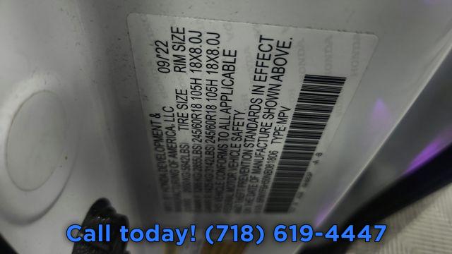 7 Speakers, AM/FM radio: SiriusXM, Radio data system, Radio: 215-Watt Audio System, Air Conditioning, Automatic temperature control, Front dual zone A/C, Rear air conditioning, Rear window defroster, Memory seat, Power driver seat, Power steering, Power windows, Remote keyless entry, Steering wheel mounted audio controls, A/V remote: CabinControl, Four wheel independent suspension, Speed-sensing steering, Traction control, 4-Wheel Disc Brakes, ABS brakes, Dual front impact airbags, Dual front side impact airbags, Emergency communication system: HondaLink Assist, Front anti-roll bar, Low tire pressure warning, Occupant sensing airbag, Overhead airbag, Rear anti-roll bar, Power moonroof, Power Liftgate, Blind Spot Information (BSI) System warning, Brake assist, Electronic Stability Control, Forward collision: Collision Mitigation Braking System (CMBS) + FCW mitigation, Lane departure: Lane Keeping Assist System (LKAS) active, Exterior Parking Camera Rear, Auto High-beam Headlights, Delay-off headlights, Front fog lights, Fully automatic headlights, Panic alarm, Security system, Speed control, Bumpers: body-color, Heated door mirrors, Power door mirrors, Spoiler, Turn signal indicator mirrors, Apple CarPlay/Android Auto, Auto-dimming Rear-View mirror, Driver door bin, Driver vanity mirror, Front reading lights, Garage door transmitter: HomeLink, Illuminated entry, Outside temperature display, Overhead console, Passenger vanity mirror, Rear reading lights, Rear seat center armrest, Tachometer, Telescoping steering wheel, Tilt steering wheel, Trip computer, 3rd row seats: split-bench, Front Bucket Seats, Front Center Armrest, Heated Front Bucket Seats, Heated front seats, Leather Seat Trim, Power passenger seat, Reclining 3rd row seat, Split folding rear seat, Passenger door bin, 18" Machine-Finished Alloy Wheels, Alloy wheels, Rear window wiper, Speed-Sensitive Wipers, Variably intermittent wipers, 4.33 Axle Ratio