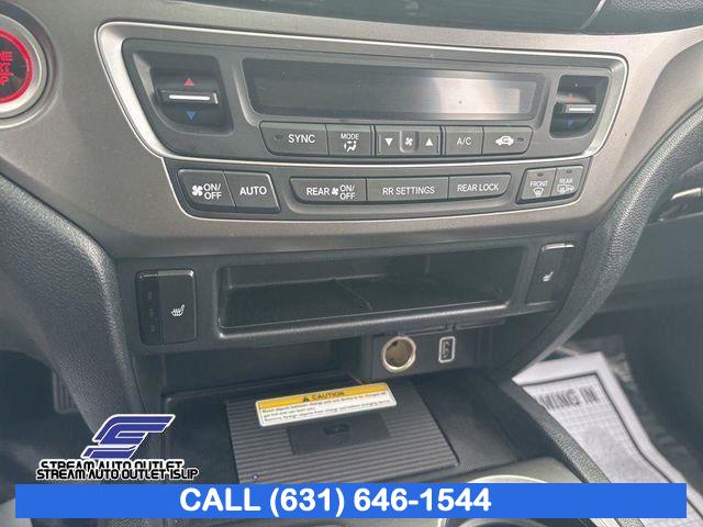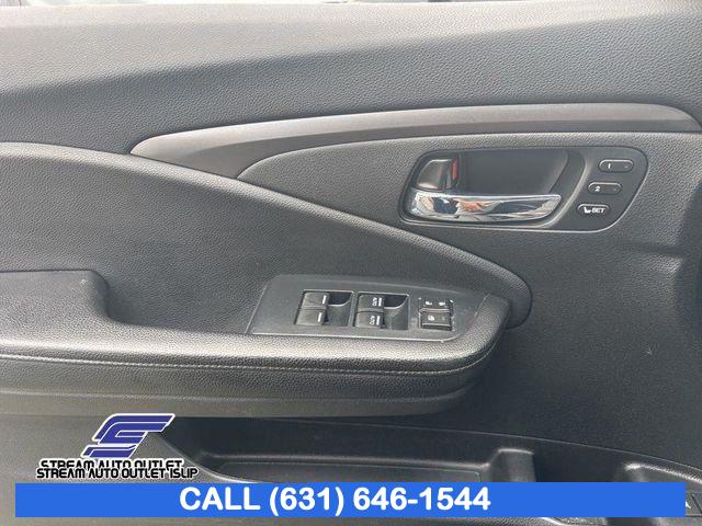 7 Speakers, AM/FM radio: SiriusXM, Radio data system, Radio: 215-Watt Audio System, Air Conditioning, Automatic temperature control, Front dual zone A/C, Rear air conditioning, Rear window defroster, Memory seat, Power driver seat, Power steering, Power windows, Remote keyless entry, Steering wheel mounted audio controls, A/V remote: CabinControl, Four wheel independent suspension, Speed-sensing steering, Traction control, 4-Wheel Disc Brakes, ABS brakes, Dual front impact airbags, Dual front side impact airbags, Emergency communication system: HondaLink Assist, Front anti-roll bar, Low tire pressure warning, Occupant sensing airbag, Overhead airbag, Rear anti-roll bar, Power moonroof, Power Liftgate, Blind Spot Information (BSI) System warning, Brake assist, Electronic Stability Control, Forward collision: Collision Mitigation Braking System (CMBS) + FCW mitigation, Lane departure: Lane Keeping Assist System (LKAS) active, Exterior Parking Camera Rear, Auto High-beam Headlights, Delay-off headlights, Front fog lights, Fully automatic headlights, Panic alarm, Security system, Speed control, Bumpers: body-color, Heated door mirrors, Power door mirrors, Roof rack: rails only, Spoiler, Turn signal indicator mirrors, Apple CarPlay/Android Auto, Auto-dimming Rear-View mirror, Driver door bin, Driver vanity mirror, Front reading lights, Garage door transmitter: HomeLink, Illuminated entry, Outside temperature display, Overhead console, Passenger vanity mirror, Rear reading lights, Rear seat center armrest, Tachometer, Telescoping steering wheel, Tilt steering wheel, Trip computer, 3rd row seats: split-bench, Front Bucket Seats, Front Center Armrest, Heated Front Bucket Seats, Heated front seats, Leather Seat Trim, Power passenger seat, Reclining 3rd row seat, Split folding rear seat, Passenger door bin, Alloy wheels, Wheels: 20" Exclusive Gloss Black Alloy, Rear window wiper, Speed-Sensitive Wipers, Variably intermittent wipers, 4.33 Axle Ratio