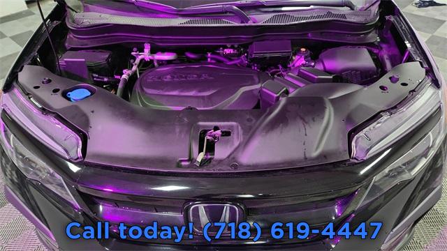 7 Speakers, AM/FM radio: SiriusXM, Radio data system, Radio: 215-Watt Audio System, Air Conditioning, Automatic temperature control, Front dual zone A/C, Rear air conditioning, Rear window defroster, Memory seat, Power driver seat, Power steering, Power windows, Remote keyless entry, Steering wheel mounted audio controls, A/V remote: CabinControl, Four wheel independent suspension, Speed-sensing steering, Traction control, 4-Wheel Disc Brakes, ABS brakes, Dual front impact airbags, Dual front side impact airbags, Emergency communication system: HondaLink Assist, Front anti-roll bar, Low tire pressure warning, Occupant sensing airbag, Overhead airbag, Rear anti-roll bar, Power moonroof, Power Liftgate, Blind Spot Information (BSI) System warning, Brake assist, Electronic Stability Control, Forward collision: Collision Mitigation Braking System (CMBS) + FCW mitigation, Lane departure: Lane Keeping Assist System (LKAS) active, Exterior Parking Camera Rear, Auto High-beam Headlights, Delay-off headlights, Front fog lights, Fully automatic headlights, Panic alarm, Security system, Speed control, Bumpers: body-color, Heated door mirrors, Power door mirrors, Roof rack: rails only, Spoiler, Turn signal indicator mirrors, Apple CarPlay/Android Auto, Auto-dimming Rear-View mirror, Driver door bin, Driver vanity mirror, Front reading lights, Garage door transmitter: HomeLink, Illuminated entry, Outside temperature display, Overhead console, Passenger vanity mirror, Rear reading lights, Rear seat center armrest, Tachometer, Telescoping steering wheel, Tilt steering wheel, Trip computer, 3rd row seats: split-bench, Front Bucket Seats, Front Center Armrest, Heated Front Bucket Seats, Heated front seats, Leather Seat Trim, Power passenger seat, Reclining 3rd row seat, Split folding rear seat, Passenger door bin, Alloy wheels, Wheels: 20" Exclusive Gloss Black Alloy, Rear window wiper, Speed-Sensitive Wipers, Variably intermittent wipers, 4.33 Axle Ratio