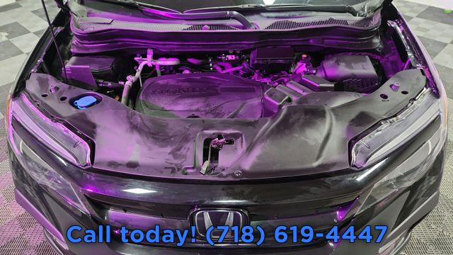 7 Speakers, AM/FM radio: SiriusXM, Radio data system, Radio: 215-Watt Audio System, Air Conditioning, Automatic temperature control, Front dual zone A/C, Rear air conditioning, Rear window defroster, Memory seat, Power driver seat, Power steering, Power windows, Remote keyless entry, Steering wheel mounted audio controls, A/V remote: CabinControl, Four wheel independent suspension, Speed-sensing steering, Traction control, 4-Wheel Disc Brakes, ABS brakes, Dual front impact airbags, Dual front side impact airbags, Emergency communication system: HondaLink Assist, Front anti-roll bar, Low tire pressure warning, Occupant sensing airbag, Overhead airbag, Rear anti-roll bar, Power moonroof, Power Liftgate, Blind Spot Information (BSI) System warning, Brake assist, Electronic Stability Control, Forward collision: Collision Mitigation Braking System (CMBS) + FCW mitigation, Lane departure: Lane Keeping Assist System (LKAS) active, Exterior Parking Camera Rear, Auto High-beam Headlights, Delay-off headlights, Front fog lights, Fully automatic headlights, Panic alarm, Security system, Speed control, Bumpers: body-color, Heated door mirrors, Power door mirrors, Roof rack: rails only, Spoiler, Turn signal indicator mirrors, Apple CarPlay/Android Auto, Auto-dimming Rear-View mirror, Driver door bin, Driver vanity mirror, Front reading lights, Garage door transmitter: HomeLink, Illuminated entry, Outside temperature display, Overhead console, Passenger vanity mirror, Rear reading lights, Rear seat center armrest, Tachometer, Telescoping steering wheel, Tilt steering wheel, Trip computer, 3rd row seats: split-bench, Front Bucket Seats, Front Center Armrest, Heated Front Bucket Seats, Heated front seats, Leather Seat Trim, Power passenger seat, Reclining 3rd row seat, Split folding rear seat, Passenger door bin, Alloy wheels, Wheels: 20" Exclusive Gloss Black Alloy, Rear window wiper, Speed-Sensitive Wipers, Variably intermittent wipers, 4.33 Axle Ratio