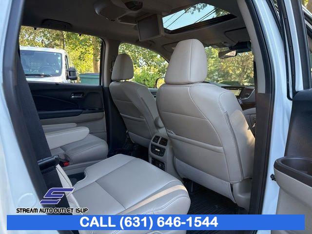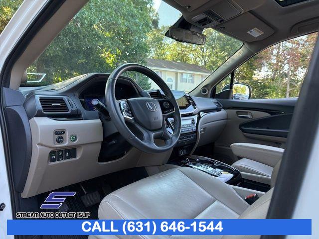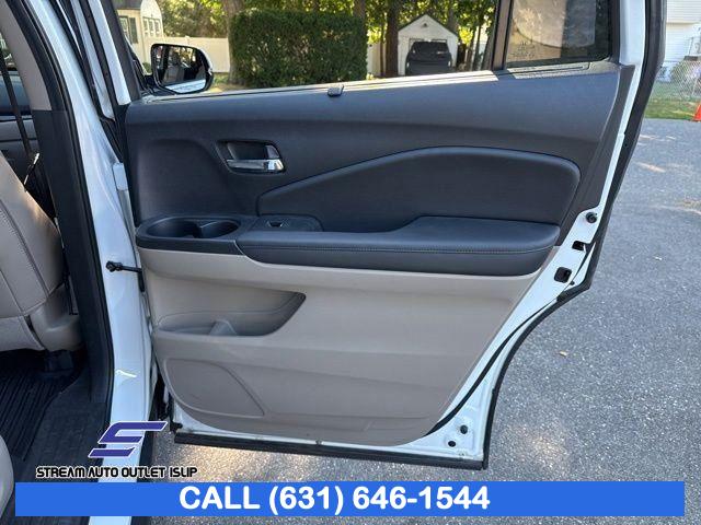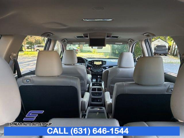 Navigation system: Honda Satellite-Linked Navigation System, 10 Speakers, AM/FM radio: SiriusXM, Radio data system, Radio: 590-Watt Premium Audio System, Rear audio controls, Air Conditioning, Automatic temperature control, Front dual zone A/C, Rear air conditioning, Rear window defroster, Memory seat, Power driver seat, Power steering, Power windows, Remote keyless entry, Steering wheel mounted audio controls, A/V remote: CabinControl, Headphones, Four wheel independent suspension, Speed-sensing steering, Traction control, 4-Wheel Disc Brakes, ABS brakes, Dual front impact airbags, Dual front side impact airbags, Emergency communication system: HondaLink, Front anti-roll bar, Low tire pressure warning, Occupant sensing airbag, Overhead airbag, Rear anti-roll bar, Power moonroof, Power Liftgate, Blind Spot Information (BSI) System warning, Brake assist, Electronic Stability Control, Forward collision: Collision Mitigation Braking System (CMBS) + FCW mitigation, Lane departure: Lane Keeping Assist System (LKAS) active, Exterior Parking Camera Rear, Auto High-beam Headlights, Delay-off headlights, Front fog lights, Fully automatic headlights, Panic alarm, Security system, Speed control, Bumpers: body-color, Heated door mirrors, Power door mirrors, Roof rack: rails only, Spoiler, Turn signal indicator mirrors, Apple CarPlay/Android Auto, Auto-dimming Rear-View mirror, Compass, Driver door bin, Driver vanity mirror, Front reading lights, Garage door transmitter: HomeLink, Illuminated entry, Outside temperature display, Overhead console, Passenger vanity mirror, Rear reading lights, Tachometer, Telescoping steering wheel, Tilt steering wheel, Trip computer, 3rd row seats: split-bench, Front Bucket Seats, Front Center Armrest, Heated Front Bucket Seats, Heated front seats, Heated rear seats, Leather Seat Trim, Power passenger seat, Reclining 3rd row seat, Split folding rear seat, Passenger door bin, Alloy wheels, Wheels: 20" Machine-Finished Alloy, Rear window wiper, Speed-Sensitive Wipers, Variably intermittent wipers, 4.33 Axle Ratio