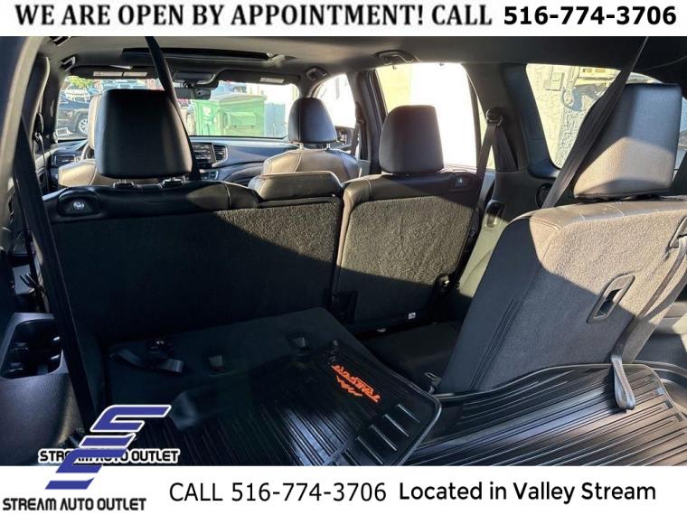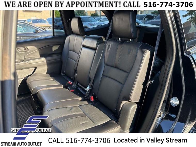 Navigation system: Honda Satellite-Linked Navigation System, 7 Speakers, AM/FM radio: SiriusXM, Radio data system, Radio: 215-Watt Audio System, Air Conditioning, Automatic temperature control, Front dual zone A/C, Rear air conditioning, Rear window defroster, Memory seat, Power driver seat, Power steering, Power windows, Remote keyless entry, Steering wheel mounted audio controls, A/V remote: CabinControl, Four wheel independent suspension, Speed-sensing steering, Traction control, 4-Wheel Disc Brakes, ABS brakes, Dual front impact airbags, Dual front side impact airbags, Emergency communication system: HondaLink Assist, Front anti-roll bar, Low tire pressure warning, Occupant sensing airbag, Overhead airbag, Rear anti-roll bar, Power moonroof, Power Liftgate, Blind Spot Information (BSI) System warning, Brake assist, Electronic Stability Control, Forward collision: Collision Mitigation Braking System (CMBS) + FCW mitigation, Lane departure: Lane Keeping Assist System (LKAS) active, Exterior Parking Camera Rear, Auto High-beam Headlights, Delay-off headlights, Front fog lights, Fully automatic headlights, Panic alarm, Security system, Speed control, Bumpers: body-color, Heated door mirrors, Power door mirrors, Roof rack: rails only, Spoiler, Turn signal indicator mirrors, Apple CarPlay/Android Auto, Auto-dimming Rear-View mirror, Driver door bin, Driver vanity mirror, Front reading lights, Garage door transmitter: HomeLink, Illuminated entry, Outside temperature display, Overhead console, Passenger vanity mirror, Rear reading lights, Rear seat center armrest, Tachometer, Telescoping steering wheel, Tilt steering wheel, Trip computer, 3rd row seats: split-bench, Front Bucket Seats, Front Center Armrest, Heated Front Bucket Seats, Heated front seats, Leather Seat Trim, Power passenger seat, Reclining 3rd row seat, Split folding rear seat, Passenger door bin, Alloy wheels, Wheels: 18" Exclusive Gloss Black Alloy, Rear window wiper, Speed-Sensitive Wipers, Variably intermittent wipers, 4.33 Axle Ratio, * NYS INSPECTION INCLUDED *, * FULL INTERIOR / EXTERIOR DETAIL *, * BACK UP CAMERA *, * NAVIGATION SYSTEM *, * BLUETOOTH *, * SUNROOF / MOONROOF*, * LEATHER SEATS *, * LIMITED NYS LEMON LAW WARRANTY INCLUDED *, *FRESH OIL CHANGE *, * 150 MULTI POINT INSPECTION *, APPLE CAR PLAY/ANDROID AUTO