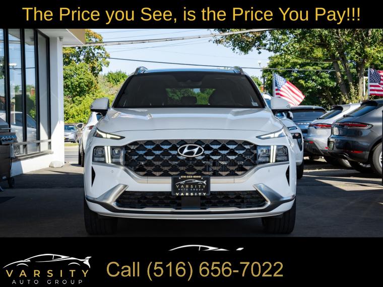 The Price you See, is the Price You Pay!!!, 1 Owner, Clean CARFAX, Low Miles, AWD, Black Leather, 12 Speakers, 4-Wheel Disc Brakes, ABS brakes, Air Conditioning, AM/FM radio: SiriusXM, Apple CarPlay & Android Auto, Auto High-beam Headlights, Auto-dimming Rear-View mirror, Automatic temperature control, Axle Ratio: 3.316, Brake assist, Bumper Applique, Bumpers: body-color, Cargo Net, Carpeted Floor Mats, Delay-off headlights, Driver door bin, Driver vanity mirror, Dual front impact airbags, Dual front side impact airbags, Electronic Stability Control, Emergency communication system, Four wheel independent suspension, Front anti-roll bar, Front Bucket Seats, Front Center Armrest, Front dual zone A/C, Front reading lights, Fully automatic headlights, Garage door transmitter: HomeLink, harman/kardonĀ® Speakers, Heads-Up Display, Heated & Ventilated Front Bucket Seats, Heated door mirrors, Heated front seats, Heated rear seats, Heated steering wheel, Illuminated entry, Leather steering wheel, Low tire pressure warning, Memory seat, Mudguards, Navigation System, Occupant sensing airbag, Option Group 01, Outside temperature display, Overhead airbag, Overhead console, Panic alarm, Passenger door bin, Passenger vanity mirror, Power door mirrors, Power driver seat, Power Liftgate, Power moonroof, Power passenger seat, Power steering, Power windows, Quilted Premium Nappa Leather Seat Trim, Radio: AM/FM Harman Kardon Display Audio, Rain sensing wipers, Rear anti-roll bar, Rear seat center armrest, Rear window defroster, Rear window wiper, Remote keyless entry, Security system, Speed control, Speed-sensing steering, Split folding rear seat, Spoiler, Steering wheel mounted audio controls, Tachometer, Telescoping steering wheel, Tilt steering wheel, Traction control, Trip computer, Turn signal indicator mirrors, Variably intermittent wipers, Ventilated front seats, Wheel Locks, Wheels: 20" x 8.0J Alloy. Quartz White 2022 Hyundai Santa Fe Calligraphy AWD Shiftronic I4 Odometer is 5333 miles below market average! 21/28 City/Highway MPG