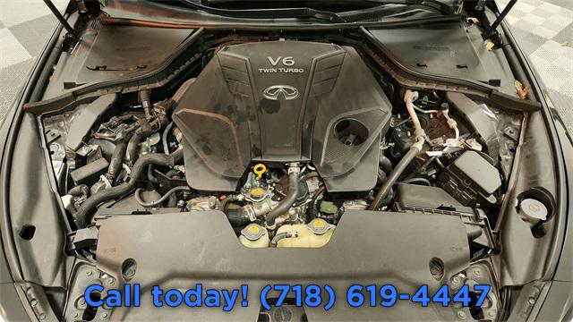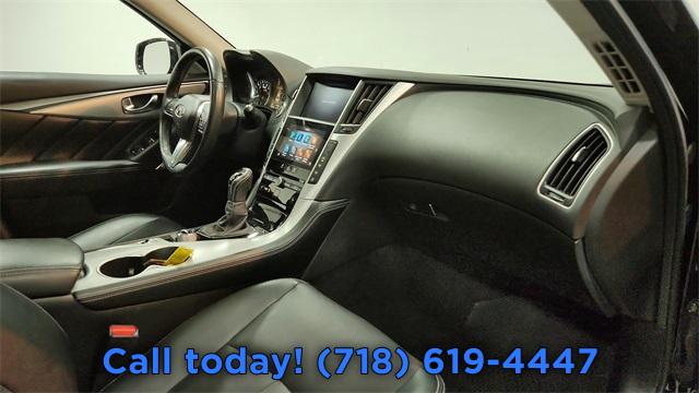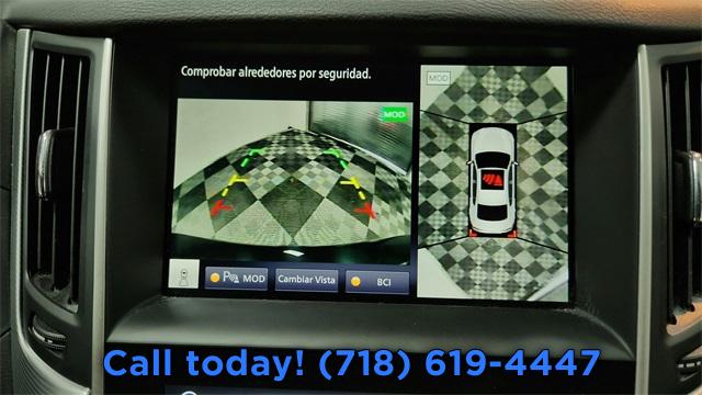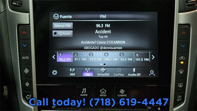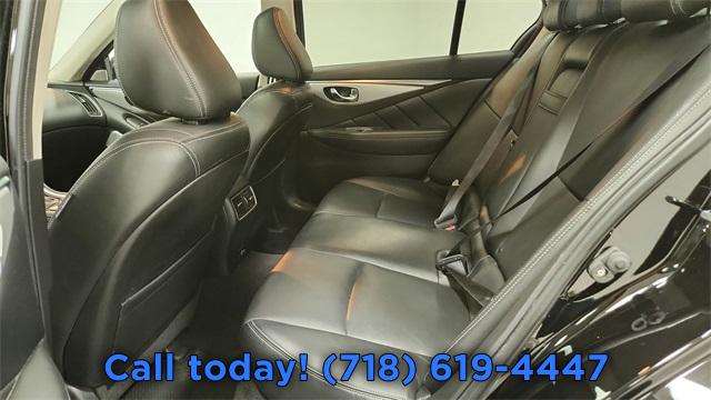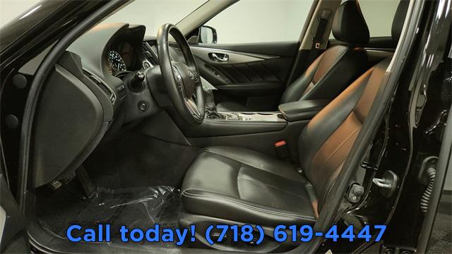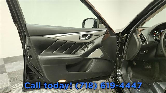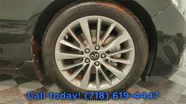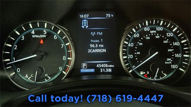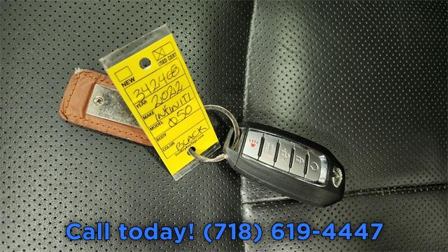 18" x 7.5" Aluminum Alloy Wheels, Heated Front Bucket Seats, Leather Seating Surfaces, Radio: INFINITI InTouch w/AM/FM/HD/CD, Splash Guards, Rear USB Charging Ports, Cargo Package, Literature Kit, First Aid Kit, Shopping Bag Hooks, Cargo Net, Trunk Mat, 4-Wheel Disc Brakes, Apple CarPlay/Android Auto, Emergency communication system: INFINITI Connection, Auto High-beam Headlights, AM/FM radio: SiriusXM, Compass, 16 Speakers, Speed-Sensitive Wipers, Auto-dimming Rear-View mirror, Blind Spot Warning, Front beverage holders, Variably intermittent wipers, Turn signal indicator mirrors, Trip computer, Traction control, Tilt steering wheel, Telescoping steering wheel, Steering wheel mounted audio controls, Steering wheel memory, Split folding rear seat, Speed control, Security system, Remote keyless entry, Rear window defroster, Rear seat center armrest, Rear reading lights, Rear anti-roll bar, Rain sensing wipers, Radio data system, Power windows, Power steering, Power passenger seat, Power moonroof, Power driver seat, Power door mirrors, Passenger vanity mirror, Passenger door bin, Panic alarm, Overhead console, Overhead airbag, Outside temperature display, Occupant sensing airbag, Memory seat, Low tire pressure warning, Leather steering wheel, Illuminated entry, Heated steering wheel, Heated front seats, Heated door mirrors, Garage door transmitter: HomeLink, Fully automatic headlights, Front reading lights, Front fog lights, Front dual zone A/C, Front anti-roll bar, Four wheel independent suspension, Dual front side impact airbags, Dual front impact airbags, Driver vanity mirror, Driver door bin, Delay-off headlights, CD player, Bumpers: body-color, Brake assist, Automatic temperature control, Auto tilt-away steering wheel, Alloy wheels, ABS brakes, Tachometer, Leather Shift Knob, Front Center Armrest, Front Bucket Seats, Electronic Stability Control, Air Conditioning