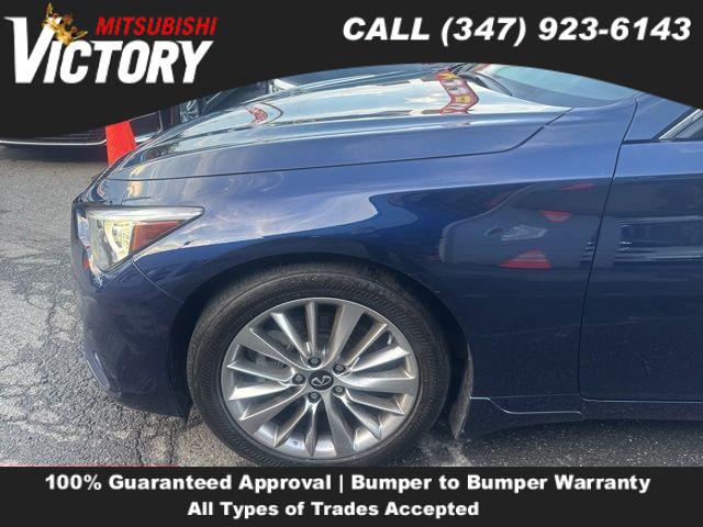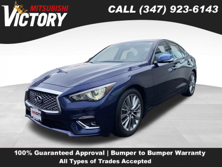 2022 INFINITI Q50 LUXE Grand Blue 4D Sedan Save yourself Time and Money - Fill out a credit application online at victorymitsubishi.com and get pre-APPROVED! Financing available for all types of credit with low monthly payment that will fit you budget. Down Payment low as $599. Same day delivery. View our entire inventory by visiting our virtual showroom at victorymitsubishi.com - Only 2 blocks away from Exit 13 off I-95 or Minutes from exit 7 on the Hutchinson Parkway. While we make every effort to ensure the data listed here is correct, there may be instances where the pricing, options or vehicle features may be listed incorrectly. Dealer cannot be held liable for data that is listed incorrectly. to see more pictures of this vehicle or call us at (347) 923-6143 today to schedule your test drive. please refer to dealer’s website for exact pricing and for any incentives that we may apply! Our address is 4070 Boston Road, Bronx, NY 10475.