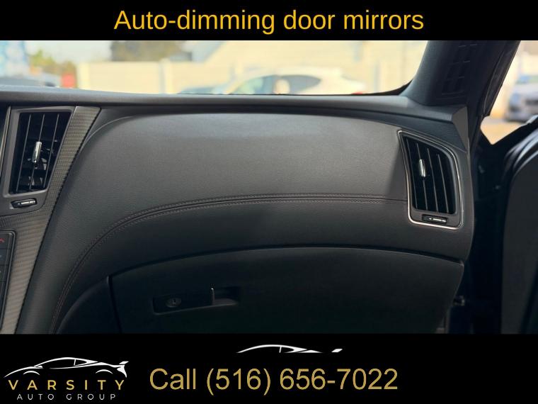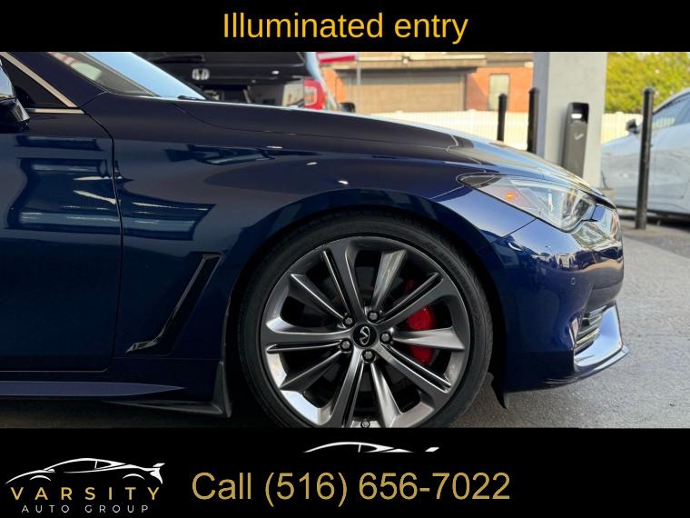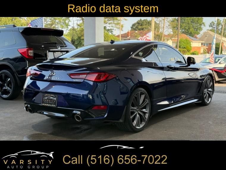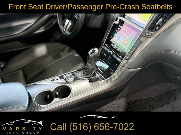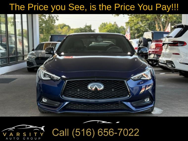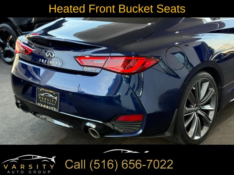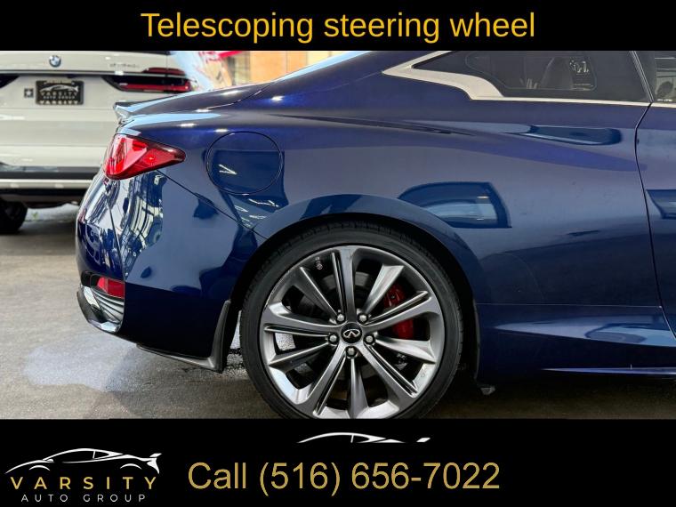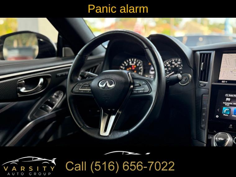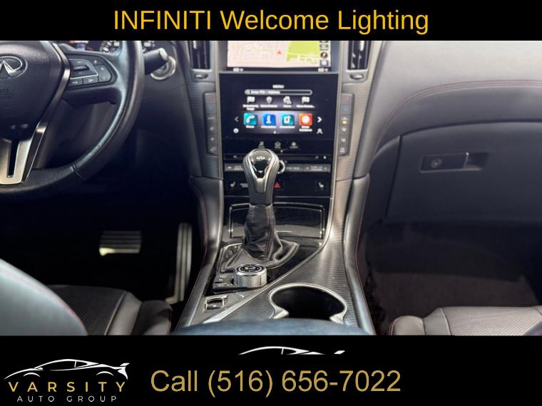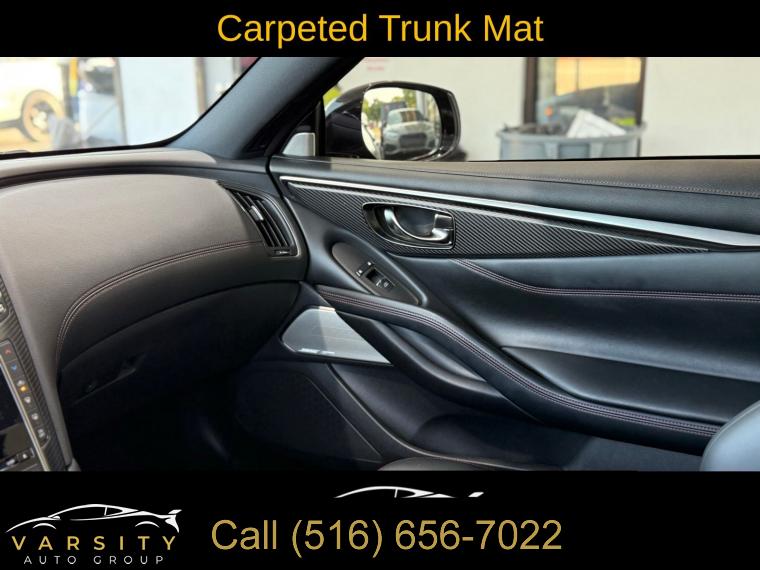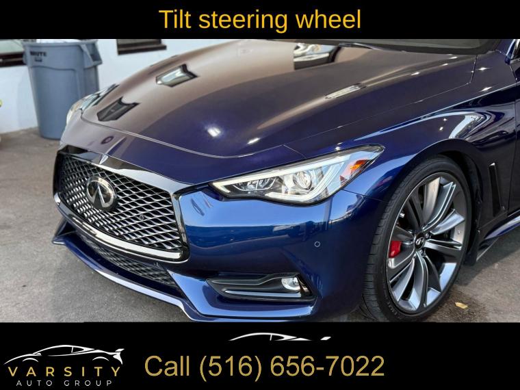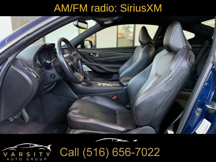 • The Price you See, is the Price You Pay!!!, 13 Speakers, 4-Wheel Disc Brakes, ABS brakes, Active Lane Control, Adaptive Front Lighting System, Adaptive suspension, Air Conditioning, Alloy wheels, AM/FM radio: SiriusXM, Apple CarPlay/Android Auto, Auto High-beam Headlights, Auto tilt-away steering wheel, Auto-dimming door mirrors, Auto-dimming Rear-View mirror, Automatic temperature control, Blind Spot Warning, Blind-Spot Intervention, Brake assist, Bumpers: body-color, Cargo Net, Cargo Package, Carpeted Trunk Mat, CD player, Delay-off headlights, Direct Adaptive Steering, Dual front impact airbags, ECO Pedal, First Aid Kit, Four wheel independent suspension, Front Bucket Seats, Front Center Armrest, Front dual zone A/C, Front fog lights, Front reading lights, Front Seat Driver/Passenger Pre-Crash Seatbelts, Heated door mirrors, Heated Front Bucket Seats, Heated front seats, Heated steering wheel, Illuminated entry, Illuminated Kick Plates, INFINITI Welcome Lighting, Lane Departure Prevention, Literature Kit, Memory seat, Navigation system: INFINITI InTouch Navigation, Outside temperature display, Overhead console, Panic alarm, Passenger door bin, Passenger vanity mirror, Power driver seat, Power passenger seat, Power steering, Power windows, ProACTIVE Package, Radio data system, Rain sensing wipers, Remote keyless entry, Speed-sensing steering, Speed-Sensitive Wipers, Telescoping steering wheel, Tilt steering wheel, Trip computer, Variably intermittent wipers, Wheels: 20" Staggered Aluminum-Alloy Sport. Grand Blue 2022 INFINITI Q60 Red Sport 400 RWD 7-Speed Automatic 3.0L V6 Odometer is 7532 miles below market average! 20/27 City/Highway MPG