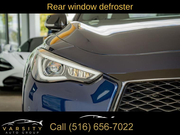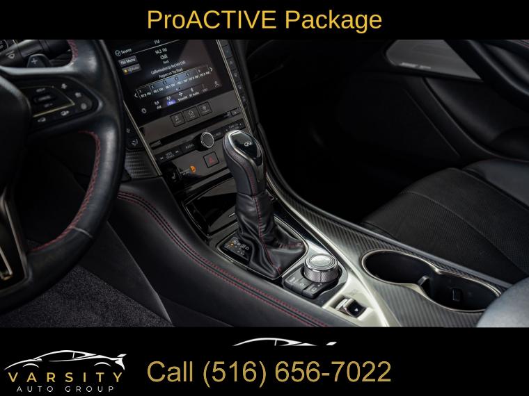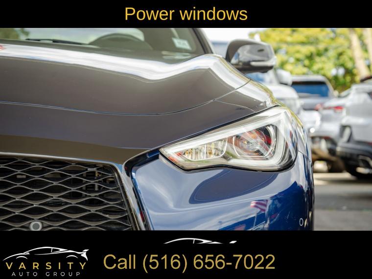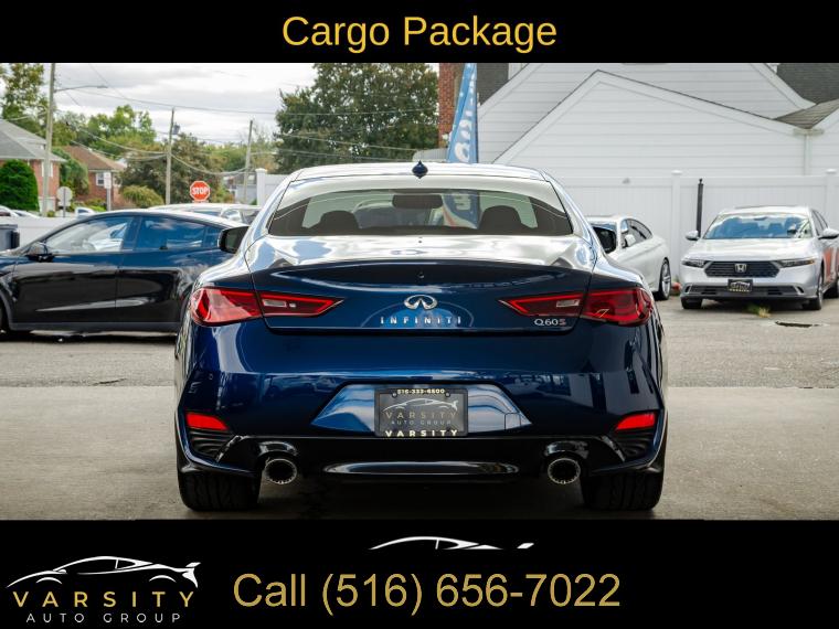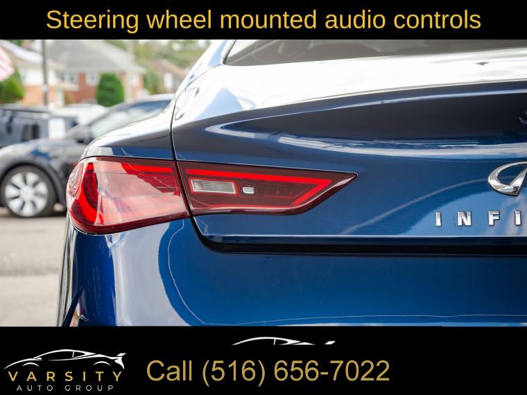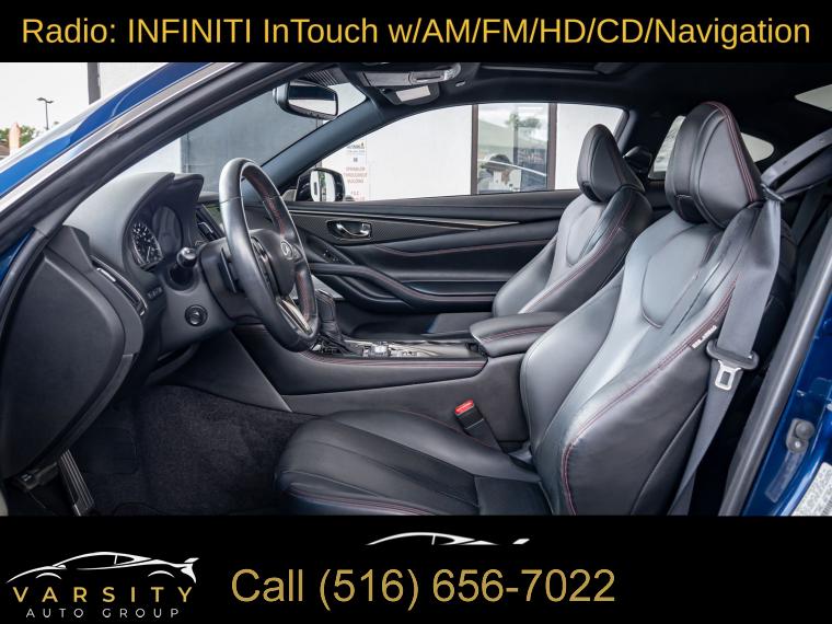 Navigation system: INFINITI InTouch Navigation, Cargo Package, ProACTIVE Package, 13 Speakers, AM/FM radio: SiriusXM, CD player, Radio data system, Radio: INFINITI InTouch w/AM/FM/HD/CD/Navigation, Air Conditioning, Automatic temperature control, Front dual zone A/C, Rear window defroster, Memory seat, Power driver seat, Power steering, Power windows, Remote keyless entry, Steering wheel memory, Steering wheel mounted audio controls, Adaptive suspension, Four wheel independent suspension, Speed-sensing steering, Traction control, 4-Wheel Disc Brakes, ABS brakes, Direct Adaptive Steering, Dual front impact airbags, Dual front side impact airbags, Emergency communication system: INFINITI Connection, Front anti-roll bar, Low tire pressure warning, Occupant sensing airbag, Overhead airbag, Rear anti-roll bar, Power moonroof, Blind Spot Warning, Brake assist, Electronic Stability Control, Adaptive Front Lighting System, Auto High-beam Headlights, Delay-off headlights, Front fog lights, Fully automatic headlights, First Aid Kit, Front Seat Driver/Passenger Pre-Crash Seatbelts, Panic alarm, Security system, Speed control, Auto-dimming door mirrors, Bumpers: body-color, Heated door mirrors, INFINITI Welcome Lighting, Power door mirrors, Special Paint - Grand Blue, Turn signal indicator mirrors, Active Lane Control, Apple CarPlay/Android Auto, Auto tilt-away steering wheel, Auto-dimming Rear-View mirror, Blind-Spot Intervention, Carpeted Trunk Mat, Compass, Driver door bin, Driver vanity mirror, ECO Pedal, Front reading lights, Garage door transmitter: HomeLink, Heated steering wheel, Illuminated entry, Illuminated Kick Plates, Lane Departure Prevention, Leather Shift Knob, Leather steering wheel, Literature Kit, Outside temperature display, Overhead console, Passenger vanity mirror, Tachometer, Telescoping steering wheel, Tilt steering wheel, Trip computer, Front Bucket Seats, Front Center Armrest, Heated Front Bucket Seats, Heated front seats, Power passenger seat, Semi-Aniline Leather-Appointed Seating Surfaces, Cargo Net, Passenger door bin, Alloy wheels, Wheels: 20" Staggered Aluminum-Alloy Sport, Rain sensing wipers, Speed-Sensitive Wipers, Variably intermittent wipers, Q60 Red Sport 400, Grand Blue, Graphite Leather, Clean CARFAX, 1 Owner, Low Miles