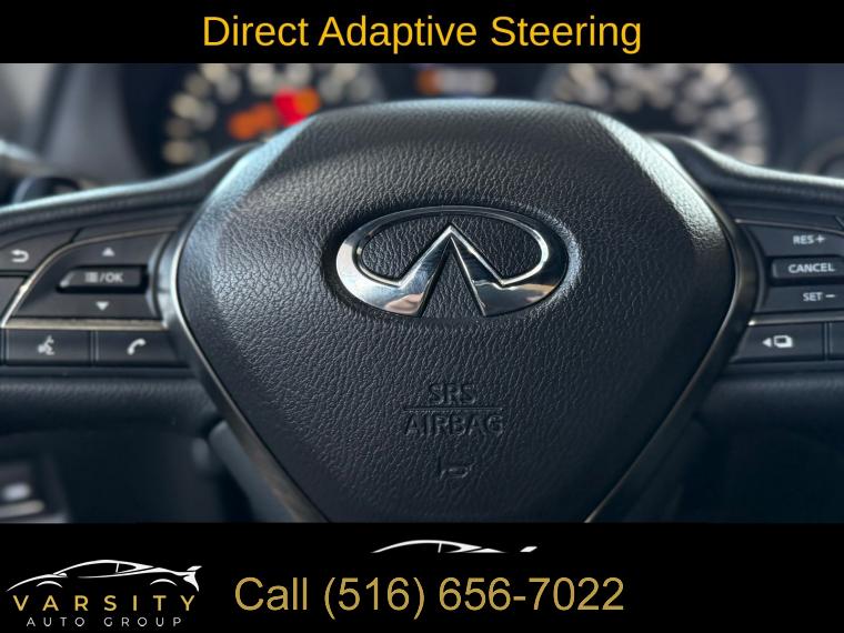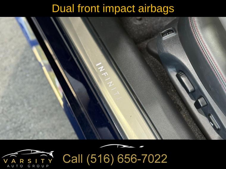• Navigation system: INFINITI InTouch Navigation, Cargo Package, ProACTIVE Package, 13 Speakers, AM/FM radio: SiriusXM, CD player, Radio data system, Radio: INFINITI InTouch w/AM/FM/HD/CD/Navigation, Air Conditioning, Automatic temperature control, Front dual zone A/C, Rear window defroster, Memory seat, Power driver seat, Power steering, Power windows, Remote keyless entry, Steering wheel memory, Steering wheel mounted audio controls, Adaptive suspension, Four wheel independent suspension, Speed-sensing steering, Traction control, 4-Wheel Disc Brakes, ABS brakes, Direct Adaptive Steering, Dual front impact airbags, Dual front side impact airbags, Emergency communication system: INFINITI Connection, Front anti-roll bar, Low tire pressure warning, Occupant sensing airbag, Overhead airbag, Rear anti-roll bar, Power moonroof, Blind Spot Warning, Brake assist, Electronic Stability Control, Adaptive Front Lighting System, Auto High-beam Headlights, Delay-off headlights, Front fog lights, Fully automatic headlights, First Aid Kit, Front Seat Driver/Passenger Pre-Crash Seatbelts, Panic alarm, Security system, Speed control, Auto-dimming door mirrors, Bumpers: body-color, Heated door mirrors, INFINITI Welcome Lighting, Power door mirrors, Turn signal indicator mirrors, Active Lane Control, Apple CarPlay/Android Auto, Auto tilt-away steering wheel, Auto-dimming Rear-View mirror, Blind-Spot Intervention, Carpeted Trunk Mat, Compass, Driver door bin, Driver vanity mirror, ECO Pedal, Front reading lights, Garage door transmitter: HomeLink, Heated steering wheel, Illuminated entry, Illuminated Kick Plates, Lane Departure Prevention, Leather Shift Knob, Leather steering wheel, Literature Kit, Outside temperature display, Overhead console, Passenger vanity mirror, Tachometer, Telescoping steering wheel, Tilt steering wheel, Trip computer, Front Bucket Seats, Front Center Armrest, Heated Front Bucket Seats, Heated front seats, Power passenger seat, Semi-Aniline Leather-Appointed Seating Surfaces, Cargo Net, Passenger door bin, Alloy wheels, Wheels: 20" Staggered Aluminum-Alloy Sport, Rain sensing wipers, Speed-Sensitive Wipers, Variably intermittent wipers, The Price you See, is the Price You Pay!!!
