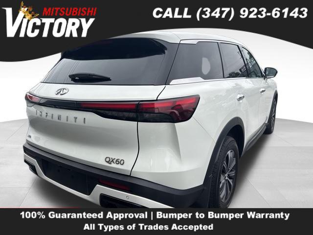 2022 INFINITI QX60 PURE Glacier White 4D Sport Utility Save yourself Time and Money - Fill out a credit application online at victorymitsubishi.com and get pre-APPROVED! Financing available for all types of credit with low monthly payment that will fit you budget. Down Payment low as $599. Same day delivery. View our entire inventory by visiting our virtual showroom at victorymitsubishi.com - Only 2 blocks away from Exit 13 off I-95 or Minutes from exit 7 on the Hutchinson Parkway. While we make every effort to ensure the data listed here is correct, there may be instances where the pricing, options or vehicle features may be listed incorrectly. Dealer cannot be held liable for data that is listed incorrectly. to see more pictures of this vehicle or call us at (347) 923-6143 today to schedule your test drive. please refer to dealer’s website for exact pricing and for any incentives that we may apply! Our address is 4070 Boston Road, Bronx, NY 10475.