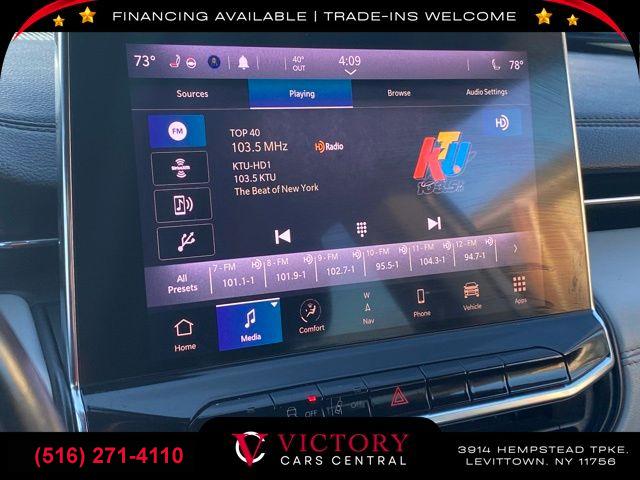 GPS Navigation, Elite Group, Quick Order Package 2GG, Sun and Sound Group, 6 Speakers, AM/FM radio: SiriusXM, HD Radio, Integrated Voice Command w/Bluetooth, No Satellite Coverage HI/AK/PR/VI/GU, Premium Alpine Speaker System, Radio: Uconnect 5 Nav w/10.1" Display, Radio: Uconnect 5 w/10.1" Display, SiriusXM Radio Service, SiriusXM Satellite Radio, SiriusXM w/360L, Air Conditioning, Automatic temperature control, Front dual zone A/C, Rear window defroster, Driver Seat Memory, Power driver seat, Power steering, Power windows, Remote keyless entry, Steering wheel mounted audio controls, Four wheel independent suspension, Traction control, 4-Wheel Disc Brakes, ABS brakes, Anti-whiplash front head restraints, Dual front impact airbags, Dual front side impact airbags, Emergency communication system: SiriusXM Guardian, Foot Activated Open 'N Go Liftgate, Front anti-roll bar, Knee airbag, Low tire pressure warning, Occupant sensing airbag, Overhead airbag, Rear anti-roll bar, Power Front/Fixed Rear Full Sunroof, Power Liftgate, Brake assist, Electronic Stability Control, ParkView Rear Back-Up Camera, Auto High-beam Headlights, Delay-off headlights, Front fog lights, Fully automatic headlights, Panic alarm, Security system, Speed control, Bumpers: body-color, Front License Plate Bracket, Gloss Black Door Cladding, Gloss Black Exterior Mirrors, Gloss Black Exterior Sill, Gloss Black Fascias, Gloss Black Wheel Flares, Heated door mirrors, LED Low/Highbeam Projector Headlamps, Power door mirrors, Premium LED Fog Lamps, Premium Taillamps, Roof rack: rails only, Spoiler, Turn signal indicator mirrors, 10.1" Touchscreen Display, 115V Auxiliary Power Outlet, 2nd Row USB Type A/C Charge Only, 4G LTE Wi-Fi Hot Spot, Alexa Built-In, Auto-dimming Rear-View mirror, Cluster 10.25" TFT Color Display, Compass, Connected Travel & Traffic Services, Disassociated Touchscreen Display, Driver door bin, Driver vanity mirror, For Details, Visit DriveUconnect.com, For More Info, Call 800-643-2112, Front reading lights, Global Telematics Box Module (TBM), Heated steering wheel, Illuminated entry, Leather Shift Knob, Outside temperature display, Overhead console, Passenger vanity mirror, Rear seat center armrest, Reversible Carpet/Vinyl Cargo Mat, SiriusXM Guardian - Included Trial (B), Tachometer, Telescoping steering wheel, Tilt steering wheel, Trip computer, 2nd Row Heated Seats, Front Bucket Seats, Heated front seats, Leather Trimmed Bucket Seats, Power 2-Way Passenger Lumbar Adjust, Power 8-Way Adjust Front Passenger Seat, Premium Leather Trimmed Bucket Seats, Split folding rear seat, Ventilated Front Seats, Front Center Armrest w/Storage, Passenger door bin, Alloy wheels, Wheels: 18" x 7" Painted Diamond Cut Aluminum, Wheels: 19" x 7.5" Painted Diamond Cut Aluminum, Rain sensing wipers, Rear window wiper, Variably intermittent wipers, 3.73 Axle Ratio