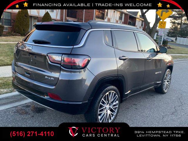 All pricing and details are believed to be accurate, but we do not warrant or guarantee such accuracy. The prices shown above may vary from region to region, as will incentives, and are subject to change. All cars are sold cosmetically As-Is. Vehicle information is based on standard equipment and may vary from vehicle to vehicle. Call or email for complete vehicle specific information. Price Does not include tax, title, license, destination charges, finance charges, or any reconditioning fees. Our special Internet pricing cannot be extended without a printed copy of the online pricing. The in-store price may exceed our special online pricing. Sorry but we cannot extend special pricing without a printed copy of the on-line pricing. To take advantage of our special Internet discounts, please print this page and present it to your salesperson at the BEGINNING of the transaction. Special Internet pricing posted on this ad/coupon/promotion is only available to customers who reference such pricing & present the ad at time of sale otherwise our store standard list price applies. Please be advised this ad is a Special Internet only ad. Prices can be modified and adjusted weekly, daily and sometimes hourly due to inquiries, bidding and website traffic on any Vehicles. All displayed inventory is subject to prior sale and all prices expire at midnight on the date displayed. Every reasonable effort has been made to ensure the accuracy of the information contained on this site, however absolute accuracy cannot be guaranteed. Advertised special excludes state tax, title, license, registration, NY state inspection, NYS tire recycling fee, finance charges, and dealer fees if applicable. Please verify any information in question with the dealership sales manager. This is easily done by calling us at (516) 271-4110 or by visiting us at the dealership. **With approved credit. Granite Crystal Metallic Clearcoat 2022 Jeep Compass Limited 4WD 9-Speed 948TE Automatic 2.4L I4 4WD.