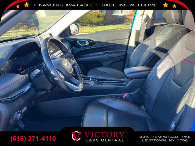 All pricing and details are believed to be accurate, but we do not warrant or guarantee such accuracy. The prices shown above may vary from region to region, as will incentives, and are subject to change. All cars are sold cosmetically As-Is. Vehicle information is based on standard equipment and may vary from vehicle to vehicle. Call or email for complete vehicle specific information. Price Does not include tax, title, license, destination charges, finance charges, or any reconditioning fees. Our special Internet pricing cannot be extended without a printed copy of the online pricing. The in-store price may exceed our special online pricing. Sorry but we cannot extend special pricing without a printed copy of the on-line pricing. To take advantage of our special Internet discounts, please print this page and present it to your salesperson at the BEGINNING of the transaction. Special Internet pricing posted on this ad/coupon/promotion is only available to customers who reference such pricing & present the ad at time of sale otherwise our store standard list price applies. Please be advised this ad is a Special Internet only ad. Prices can be modified and adjusted weekly, daily and sometimes hourly due to inquiries, bidding and website traffic on any Vehicles. All displayed inventory is subject to prior sale and all prices expire at midnight on the date displayed. Every reasonable effort has been made to ensure the accuracy of the information contained on this site, however absolute accuracy cannot be guaranteed. Advertised special excludes state tax, title, license, registration, NY state inspection, NYS tire recycling fee, finance charges, and dealer fees if applicable. Please verify any information in question with the dealership sales manager. This is easily done by calling us at (516) 271-4110 or by visiting us at the dealership. **With approved credit. Laser Blue Pearlcoat 2022 Jeep Compass Trailhawk 4WD 9-Speed 948TE Automatic 2.4L I4 4WD.