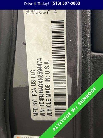 One owner. Altitude trim, Baltic Gray Metallic Clearcoat exterior and Global Black interior. Jeep Certified. Heated Seats, Sunroof, Onboard Communications System, iPod/MP3 Input, Back-Up Camera, 4x4, POWER SUNROOF , ENGINE: 3.6L V6 24V VVT UPG I W/ESS, TRANSMISSION: 8-SPEED AUTOMATIC 850RE. QUICK ORDER PACKAGE 22B ALTITUDE, Alloy Wheels.SHOP WITH CONFIDENCE7-Year/100,000-Mile Powertrain Limited warranty, Rental Car Allowance, 24-Hour Towing and Roadside Assistance, Carfax Vehicle History Report, 3-Month/3,000-Mile Maximum Care Coverage, Introductory 3-month subscription to SiriusXM® Satellite Radio Approx. Original Base Sticker Price: $40,300*.KEY FEATURES INCLUDE4x4, Back-Up Camera, iPod/MP3 Input, Onboard Communications System, Aluminum WheelsOPTION PACKAGESQUICK ORDER PACKAGE 22B ALTITUDE Engine: 3.6L V6 24V VVT UPG I w/ESS, Transmission: 8-Speed Automatic 850RE, Selectable Tire Fill Alert, Remote Start System, Secondary Active Grille Shutters, Rain Sensitive Windshield Wipers, Wireless Charging Pad, Heated Front Seats, Altitude Appearance Package, Black Headliner, Delete Laredo Badge, Leather Wrapped Steering Wheel, 115V Auxiliary Power Outlet, Gloss Black Exterior Accents, Heated Steering Wheel, Molded In Color Black/Gloss Black Roof Rails, Power Liftgate, POWER SUNROOF, TRANSMISSION: 8-SPEED AUTOMATIC 850RE (STD), ENGINE: 3.6L V6 24V VVT UPG I W/ESS (STD). Jeep Altitude with Baltic Gray Metallic Clearcoat exterior and Global Black interior features a V6 Cylinder Engine with 293 HP at 6400 RPM*.EXPERTS REPORTGreat Gas Mileage: 26 MPG Hwy.BUY FROM AN AWARD WINNING DEALERWe hand select the finest automobiles possible, recondition as required so you do not have to worry about anything shortly down the road. Our Certified vehicles for example all have more than 50% brake life, most have brand new brakes installed front and rear and it does not end there.WESTBURY VIPAmericas #1 VIP Plus Program includes Complimentary Loaner Cars, UnlimitedOil & Filter changes for 1 yr. & then included with every factorymaintenance, Courtesy Shuttle to work, home or any other location, ExpressLube 30 minutes or less w/ no appointment necessary, Complimentary NYSI, 24/7 Rescue & Towing.