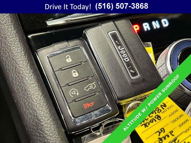 One owner. Jeep Certified. Diamond Black Crystal Pearlcoat exterior and Global Black interior, Altitude trim. Heated Seats, Moonroof, Onboard Communications System, iPod/MP3 Input, Back-Up Camera, 4x4, POWER SUNROOF , ENGINE: 3.6L V6 24V VVT UPG I W/ESS, TRANSMISSION: 8-SPEED AUTOMATIC 850RE. QUICK ORDER PACKAGE 22B ALTITUDE, Aluminum Wheels.PURCHASE WITH CONFIDENCE7-Year/100,000-Mile Powertrain Limited warranty, Rental Car Allowance, 24-Hour Towing and Roadside Assistance, Carfax Vehicle History Report, 3-Month/3,000-Mile Maximum Care Coverage, Introductory 3-month subscription to SiriusXM® Satellite Radio Approx. Original Base Sticker Price: $40,300*.KEY FEATURES INCLUDE4x4, Back-Up Camera, iPod/MP3 Input, Onboard Communications SystemOPTION PACKAGESQUICK ORDER PACKAGE 22B ALTITUDE Engine: 3.6L V6 24V VVT UPG I w/ESS, Transmission: 8-Speed Automatic 850RE, Selectable Tire Fill Alert, Remote Start System, Secondary Active Grille Shutters, Rain Sensitive Windshield Wipers, Wireless Charging Pad, Heated Front Seats, Altitude Appearance Package, Black Headliner, Delete Laredo Badge, Leather Wrapped Steering Wheel, 115V Auxiliary Power Outlet, Gloss Black Exterior Accents, Heated Steering Wheel, Molded In Color Black/Gloss Black Roof Rails, Power Liftgate, POWER SUNROOF, TRANSMISSION: 8-SPEED AUTOMATIC 850RE (STD), ENGINE: 3.6L V6 24V VVT UPG I W/ESS (STD). Jeep Altitude with Diamond Black Crystal Pearlcoat exterior and Global Black interior features a V6 Cylinder Engine with 293 HP at 6400 RPM*.EXPERTS REPORTGreat Gas Mileage: 26 MPG Hwy.BUY FROM AN AWARD WINNING DEALERWe hand select the finest automobiles possible, recondition as required so you do not have to worry about anything shortly down the road. Our Certified vehicles for example all have more than 50% brake life, most have brand new brakes installed front and rear and it does not end there.WESTBURY VIPAmericas #1 VIP Plus Program includes Complimentary Loaner Cars, UnlimitedOil & Filter changes for 1 yr. & then included with every factorymaintenance, Courtesy Shuttle to work, home or any other location, ExpressLube 30 minutes or less w/ no appointment necessary, Complimentary NYSI, 24/7 Rescue & Towing.