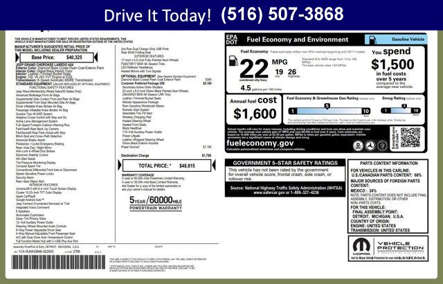 For more information on this 2022 Jeep Grand Cherokee, please call Westbury Jeep Chrysler Dodge at (516) 507-3868 or with the contact form on this page. This vehicle's vin number is 1C4RJHAG8N8622935 and is recorded as being in stock at Westbury Jeep Chrysler Dodge at 100 Jericho Tpke in Jericho. See all cars from this dealership.