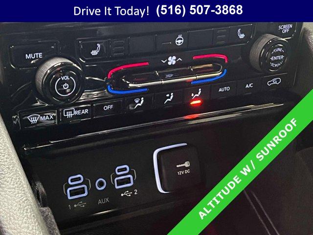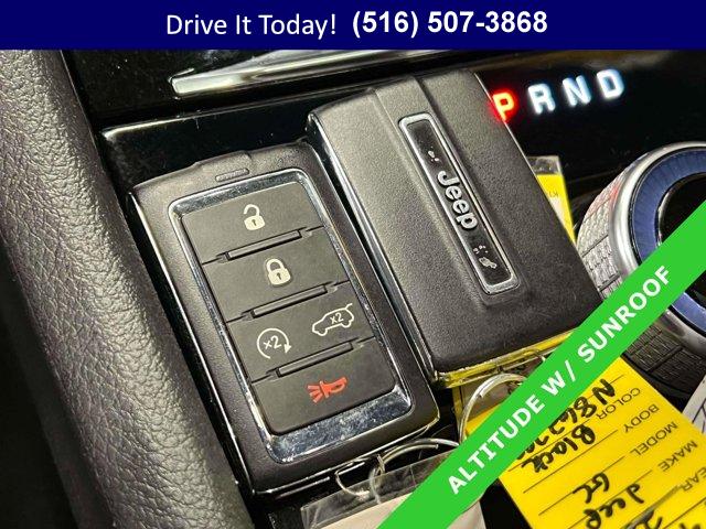 One owner. Jeep Certified. Baltic Gray Metallic Clearcoat exterior and Global Black interior, Altitude trim. Heated Seats, Sunroof, Onboard Communications System, iPod/MP3 Input, Back-Up Camera, 4x4, POWER SUNROOF , ENGINE: 3.6L V6 24V VVT UPG I W/ESS, TRANSMISSION: 8-SPEED AUTOMATIC 850RE. QUICK ORDER PACKAGE 22B ALTITUDE, Alloy Wheels.SHOP WITH CONFIDENCE7-Year/100,000-Mile Powertrain Limited warranty, Rental Car Allowance, 24-Hour Towing and Roadside Assistance, Carfax Vehicle History Report, 3-Month/3,000-Mile Maximum Care Coverage, Introductory 3-month subscription to SiriusXM® Satellite Radio Approx. Original Base Sticker Price: $40,300*.KEY FEATURES INCLUDE4x4, Back-Up Camera, iPod/MP3 Input, Onboard Communications System, Aluminum WheelsOPTION PACKAGESQUICK ORDER PACKAGE 22B ALTITUDE Engine: 3.6L V6 24V VVT UPG I w/ESS, Transmission: 8-Speed Automatic 850RE, Selectable Tire Fill Alert, Remote Start System, Secondary Active Grille Shutters, Rain Sensitive Windshield Wipers, Wireless Charging Pad, Heated Front Seats, Altitude Appearance Package, Black Headliner, Delete Laredo Badge, Leather Wrapped Steering Wheel, 115V Auxiliary Power Outlet, Gloss Black Exterior Accents, Heated Steering Wheel, Molded In Color Black/Gloss Black Roof Rails, Power Liftgate, POWER SUNROOF, TRANSMISSION: 8-SPEED AUTOMATIC 850RE (STD), ENGINE: 3.6L V6 24V VVT UPG I W/ESS (STD). Jeep Altitude with Baltic Gray Metallic Clearcoat exterior and Global Black interior features a V6 Cylinder Engine with 293 HP at 6400 RPM*.VEHICLE REVIEWSGreat Gas Mileage: 26 MPG Hwy.WHY BUY FROM USWe hand select the finest automobiles possible, recondition as required so you do not have to worry about anything shortly down the road. Our Certified vehicles for example all have more than 50% brake life, most have brand new brakes installed front and rear and it does not end there.WESTBURY VIPAmericas #1 VIP Plus Program includes Complimentary Loaner Cars, UnlimitedOil & Filter changes for 1 yr. & then included with every factorymaintenance, Courtesy Shuttle to work, home or any other location, ExpressLube 30 minutes or less w/ no appointment necessary, Complimentary NYSI, 24/7 Rescue & Towing.