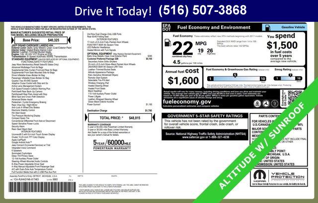 For more information on this 2022 Jeep Grand Cherokee, please call Westbury Jeep Chrysler Dodge at (516) 507-3868 or with the contact form on this page. This vehicle's vin number is 1C4RJHAG1N8617463 and is recorded as being in stock at Westbury Jeep Chrysler Dodge at 100 Jericho Tpke in Jericho. See all cars from this dealership.
