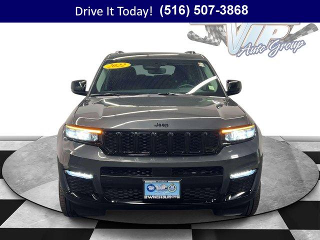 4WD capability and three-row comfort come together in this 2022 Jeep Grand Cherokee L 4D Sport Utility, ideal for family life and weekend escapes alike. Finished in Baltic Gray Metallic Clearcoat with Global Black leather seating, it blends refined style with everyday usability. The smooth 8-speed automatic and confident V6 deliver relaxed commuting and effortless highway cruising, while Normal Duty Suspension and four wheel independent suspension help keep the ride composed on rough pavement and wet roads. Inside, the cabin stays pleasantly quiet thanks to Active Noise Control, and the dual-pane panoramic sunroof brightens long drives with an open, airy feel.Capri leather seats offer all-day support, with heated front and second-row seats taking the sting out of cold mornings. A heated steering wheel warms quickly, and the power liftgate simplifies loading gear or groceries. The split-folding second row, reclining third row, and manual fold seatbacks create flexible space for passengers and cargo. Memory seat settings, power driver and passenger seats, automatic temperature control with front dual-zone A/C, and rear air conditioning tune the environment for everyone on board. The Black Appearance Package adds gloss black exterior accents, roof rails, and striking aluminum wheels to complete the look.Stay connected and in control with Uconnect 5 Nav on a 10.1 inch multimedia display featuring Apple CarPlay, Google Android Auto, HD Radio, and SiriusXM with 360L. A 4G LTE Wi-Fi Hot Spot keeps passengers online, while integrated voice command with Bluetooth and steering wheel media controls make it easy to handle calls and music without distraction. The 9 amplified speakers with subwoofer and 506 watt amplifier deliver rich, clear sound. GPS navigation, Connected Travel & Traffic Services, and an integrated center stack layout put key information right where you need it. An interior rear facing camera helps you check on second and third-row passengers at a glance.Safety and driver confidence are well covered with multiple airbags including knee airbags, ParkView Rear Back-Up Camera, Adaptive Cruise Control, Auto High-beam Headlights, Electronic Stability Control, 4-wheel disc brakes with ABS, traction control, and brake assist. Speed-sensitive wipers, fully automatic headlights, heated mirrors, and fog lights add visibility and convenience in changing weather, while the security system and remote keyless entry provide peace of mind & more.This Grand Cherokee L shows 59,634 miles. The Baltic Gray finish, gloss black accents, and thoughtfully tailored Global Black leather interior present a modern, upscale feel that suits daily commuting and long-haul road trips equally well.VIP+ ProgramEnjoy long-term value with our VIP+ Program. You get Unlimited Oil and Filter changes for 1 year, then included with every factory maintenance thereafter, plus Complimentary NYS Inspections, Complimentary Loaner Cars, and Complimentary 24/7 Rescue and Towing. These benefits are For Life and Transferable, adding confidence for you today and value for the next owner tomorrow.More About UsOur vehicles are hand selected for quality and long-term reliability, then thoroughly reconditioned prior to sale so you can purchase with confidence. Certified vehicles at our stores meet strict standards, including brake life no less than 50 percent, underscoring our focus on safety and durability. As a proud member of the VIP Auto Group serving the local community since 1957, we stand behind every sale with our promise, We Will Satisfy You!If you?re looking for a used car on Long Island that handles winter with confidence and everyday commuting with ease, this Grand Cherokee L brings the right mix of space, traction, and comfort. With 4WD, heated seats and steering wheel, and a quiet, well-equipped cabin, it is built for the Northeast?s changing seasons and the demands of family life in New York, all while delivering the long-term value shoppers want in an affordable used car.Call now, schedule a test drive, or learn more at WestburyJeep.com, where you can view up-to-date inventory and current pricing. New York shoppers are also invited to stop in and experience this 2022 Jeep Grand Cherokee L in person. Vehicle details and equipment are provided as a general overview and may vary by vehicle. Please confirm exact features with our team.