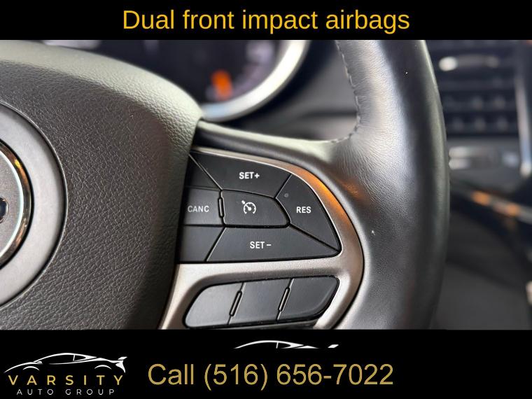 Navigation System, Quick Order Package 2GM Laredo X (DISC), 6 Speakers, AM/FM radio: SiriusXM, Radio data system, Radio: Uconnect 4C Nav w/8.4" Display, Air Conditioning, Automatic temperature control, Front dual zone A/C, Rear window defroster, Power driver seat, Power steering, Power windows, Remote keyless entry, Security Alarm, Steering wheel mounted audio controls, Universal Garage Door Opener, Four wheel independent suspension, Normal Duty Suspension, Speed-sensing steering, Traction control, 4-Wheel Disc Brakes, ABS brakes, Anti-whiplash front head restraints, Dual front impact airbags, Dual front side impact airbags, Emergency communication system: SiriusXM Guardian, Front anti-roll bar, Knee airbag, Low tire pressure warning, Occupant sensing airbag, Overhead airbag, Rear anti-roll bar, Power Liftgate, Brake assist, Electronic Stability Control, ParkView Rear Back-Up Camera, Delay-off headlights, Front fog lights, Fully automatic headlights, Panic alarm, Speed control, Remote Start System, Bumpers: body-color, Heated door mirrors, Power door mirrors, Spoiler, 115V Auxiliary Power Outlet, Apple CarPlay/Android Auto, Auto-dimming Rear-View mirror, Black Suede Seats w/Black Stitching, Compass, Driver door bin, Driver vanity mirror, Front reading lights, Heated Steering Wheel, Illuminated entry, Leather Shift Knob, Outside temperature display, Overhead console, Passenger vanity mirror, Rear reading lights, Rear seat center armrest, Steering Wheel Mounted Audio Controls, Tachometer, Telescoping steering wheel, Tilt steering wheel, Trip computer, Cloth Bucket Seats, Front Bucket Seats, Heated Front Seats, Split folding rear seat, Front Center Armrest w/Storage, Passenger door bin, Alloy wheels, Wheels: 18" x 8.0" Fine Silver Aluminum, Rear window wiper, Speed-Sensitive Wipers, Variably intermittent wipers, 3.45 Rear Axle Ratio, The Price you See, is the Price You Pay!!!