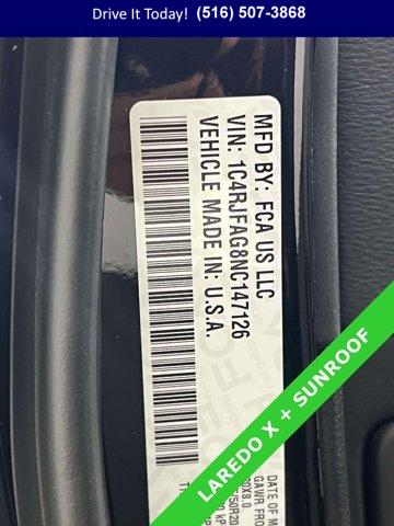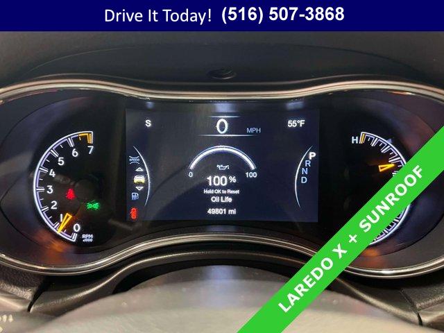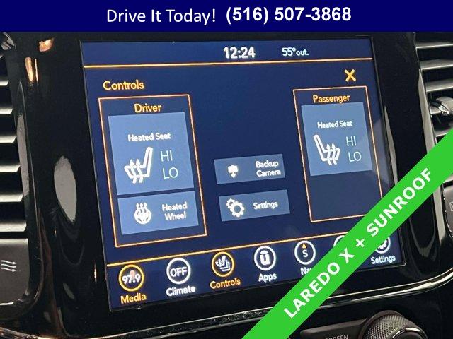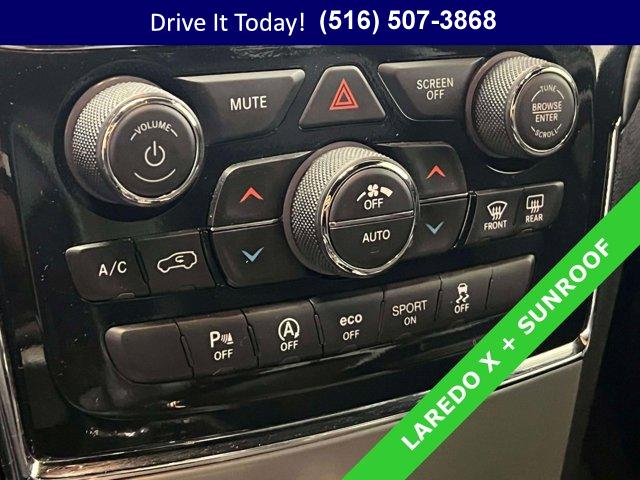 BLACK BLACK SUEDE SEATS W/BLACK STITCHING, TRANSMISSION: 8-SPEED AUTOMATIC (8HP50), QUICK ORDER PACKAGE 2GM LAREDO X -inc: Engine: 3.6L V6 24V VVT UPG I w/ESS Transmission: 8-Speed Automatic (8HP50) Remote Start System 115V Auxiliary Power Outlet Universal Garage Door Opener Heated Front Seats Heated Steering Wheel Power Liftgate Security Alarm, ENGINE: 3.6L V6 24V VVT UPG I W/ESS (STD), DIAMOND BLACK CRYSTAL PEARLCOAT, POWER SUNROOF, ALTITUDE APPEARANCE PACKAGE -inc: Body Color Fascia Front Accent/Body Color Fascia Rear Fascia Black Molded in Color Step Pad Body Color Shark Fin Antenna Rear Accent/Body Color Fascia Single Exhaust w/Bright Tip Dark Headlamp Bezel Finish Body Color Claddings Delete Laredo Badge Altitude Grille Dark Day Light Opening Moldings Gloss Black Rear Fascia Applique Wheels: 20 x 8.0 Gloss Black Aluminum Dark Lens Taillamps Selec-Terrain System Tires: 265/50R20 BSW A/S LRR Quadra-Trac II 4WD System Hill Descent Control Gloss Black Jeep Badging, WHEELS: 20 X 8.0 GLOSS BLACK ALUMINUM