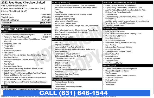 2022 Jeep Grand Cherokee Limited Diamond Black Crystal Pearlcoat 8-Speed Automatic 4WD, Quick Order Package 22E. CARFAX One-Owner. 19/26 City/Highway MPG