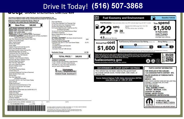 Certified, One Owner, Clean Carfax! This 2022 Jeep Grand Cherokee Limited delivers refined luxury with rugged Jeep capability. Packed with tech, comfort, and confidence-inspiring performance - it's your perfect blend of adventure and sophistication! Every Westbury Pre-owned vehicle is thoroughly checked and reconditioned. All this vehicle needs is you!BUY WITH CONFIDENCE7-Year/100,000-Mile Powertrain Limited warranty, Rental Car Allowance, 24-Hour Towing and Roadside Assistance, Carfax Vehicle History Report, 3-Month/3,000-Mile Maximum Care Coverage, Introductory 3-month subscription to SiriusXM Satellite RadioOPTION PACKAGESRADIO: UCONNECT 5 NAV W/10.1 DISPLAY 9 speaker premium alpine audio system, 10.1 Touchscreen Display, 9 Amplified Speakers w/Subwoofer, HD Radio, GPS Navigation, 506 Watt Amplifier, All Radio Equipped Vehicles, Connected Travel & Traffic Services, ENGINE: 3.6L V6 24V VVT UPG I W/ESS (STD), TRANSMISSION: 8-SPEED AUTOMATIC 850RE (STD).KEY FEATURES INCLUDELeather Seats, Heated Rear Seat. Jeep Limited with Silver Zynith exterior and Global Black interior features a V6 Cylinder Engine with 293 HP at 6400 RPM*.MORE ABOUT USWe hand select the finest automobiles possible, recondition as required so you do not have to worry about anything shortly down the road. Our Certified vehicles for example all have more than 50% brake life, most have brand new brakes installed front and rear and it does not end there.WESTBURY VIPAmerica's #1 VIP Plus Program includes Complimentary Loaner Cars, UnlimitedOil & Filter changes for 1 yr. & then included with every factorymaintenance, Courtesy Shuttle to work, home or any other location, ExpressLube 30 minutes or less w/ no appointment necessary, Complimentary NYSI, 24/7 Rescue & Towing.