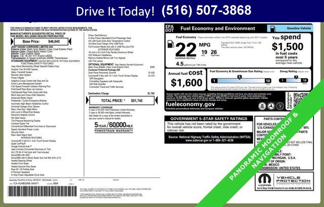 One owner. Jeep Certified. Limited trim, Baltic Gray Metallic Clearcoat exterior and Global Black interior. Heated Leather Seats, NAV, Sunroof, Heated Rear Seat, Power Liftgate, 4x4, RADIO: UCONNECT 5 NAV W/10.1 DISPLAY. DUAL-PANE PANORAMIC SUNROOF, ENGINE: 3.6L V6 24V VVT UPG I W/ESS, TRANSMISSION: 8-SPEED AUTOMATIC 850RE. Alloy Wheels.BUY WITH CONFIDENCE7-Year/100,000-Mile Powertrain Limited warranty, Rental Car Allowance, 24-Hour Towing and Roadside Assistance, Carfax Vehicle History Report, 3-Month/3,000-Mile Maximum Care Coverage, Introductory 3-month subscription to SiriusXM® Satellite Radio Approx. Original Base Sticker Price: $46,600*.KEY FEATURES INCLUDELeather Seats, 4x4, Power Liftgate, Heated Driver Seat, Heated Rear Seat.OPTION PACKAGESDUAL-PANE PANORAMIC SUNROOF, RADIO: UCONNECT 5 NAV W/10.1 DISPLAY 9 speaker premium alpine audio system, 10.1 Touchscreen Display, 9 Amplified Speakers w/Subwoofer, HD Radio, GPS Navigation, 506 Watt Amplifier, All Radio Equipped Vehicles, Connected Travel & Traffic Services, TRANSMISSION: 8-SPEED AUTOMATIC 850RE (STD) Jeep Limited with Baltic Gray Metallic Clearcoat exterior and Global Black interior features a V6 Cylinder Engine with 293 HP at 6400 RPM*.EXPERTS CONCLUDEGreat Gas Mileage: 26 MPG Hwy.MORE ABOUT USWe hand select the finest automobiles possible, recondition as required so you do not have to worry about anything shortly down the road. Our Certified vehicles for example all have more than 50% brake life, most have brand new brakes installed front and rear and it does not end there.WESTBURY VIPAmericas #1 VIP Plus Program includes Complimentary Loaner Cars, UnlimitedOil & Filter changes for 1 yr. & then included with every factorymaintenance, Courtesy Shuttle to work, home or any other location, ExpressLube 30 minutes or less w/ no appointment necessary, Complimentary NYSI, 24/7 Rescue & Towing.