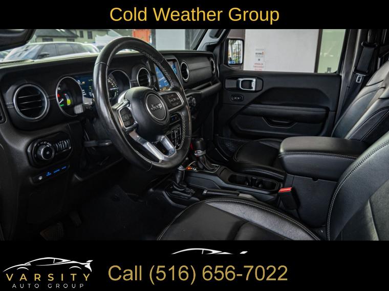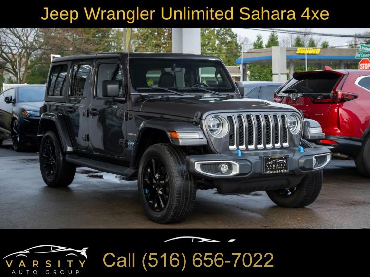 Navigation System, Cold Weather Group, Quick Order Package 29P, 9 Speakers, AM/FM radio, Radio data system, Radio: Uconnect 4C Nav w/8.4" Display, Air Conditioning, Automatic temperature control, Front dual zone A/C, Rear Window Defroster, Power steering, Power windows, Remote keyless entry, Steering wheel mounted audio controls, Sport Suspension, Traction control, 4-Wheel Disc Brakes, ABS brakes, Dual front impact airbags, Dual front side impact airbags, Emergency communication system: SiriusXM Guardian, Front anti-roll bar, Integrated roll-over protection, Low tire pressure warning, Occupant sensing airbag, Rear anti-roll bar, Remote Start System, Brake assist, Electronic Stability Control, ParkView Rear Back-Up Camera, Delay-off headlights, Front fog lights, Fully automatic headlights, Panic alarm, Security system, Speed control, Black 3-Piece Hard Top, Front License Plate Bracket, Heated door mirrors, No Soft Top, Power door mirrors, Apple CarPlay/Android Auto, Auto-dimming Rear-View mirror, Compass, Driver door bin, Driver vanity mirror, Front reading lights, Garage door transmitter, Heated Steering Wheel, Illuminated entry, Leather Shift Knob, Leather steering wheel, Outside temperature display, Passenger vanity mirror, Premium McKinley Trimmed Seats, Rear reading lights, Rear seat center armrest, Tachometer, Telescoping steering wheel, Tilt steering wheel, Trip computer, Voltmeter, Front Bucket Seats, Heated Front Seats, Split folding rear seat, Freedom Panel Storage Bag, Front Center Armrest w/Storage, Passenger door bin, Alloy wheels, Wheels: 20" x 8" Fully Painted Aluminum, Rear Window Wiper/Washer, Variably intermittent wipers, 3.73 Rear Axle Ratio, The Price you See, is the Price You Pay!!!, Jeep Wrangler Unlimited Sahara 4xe, Granite Crystal Metallic Clearcoat, Clean CARFAX, One Owner, 4 wheel drive
