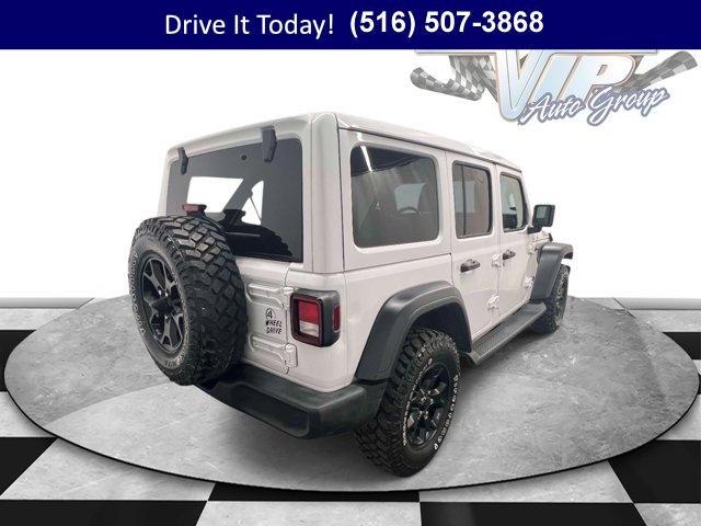 Jeep Certified capability meets everyday comfort in this 2022 Jeep Wrangler 4D Sport Utility with confident 4WD traction and the Willys package for added grip and trail-ready style. Finished in Bright White Clearcoat with durable Black cloth bucket seats, it balances open-air freedom with refined daily drivability thanks to an 8-speed automatic, automatic temperature control, and thoughtful convenience touches throughout. The Sky 1-Touch Power Top lets you go from sealed cabin to sunshine in seconds, while the anti-spin rear differential and 3.45 rear axle ratio add surefooted performance for the Northeast?s changing weather. It shows 58,277 miles and is ready for your commute, errands, and weekend escapes.Stay connected and in control with a crisp 8.4 inch multimedia display powered by Uconnect 4C Nav, seamless Apple CarPlay/Android Auto, integrated GPS Navigation, and an Alpine Premium Audio System for rich sound. A 7.0 inch TFT color driver display, Off-Road Info Pages, 4G LTE Wi-Fi Hot Spot, HD Radio, SiriusXM Traffic Plus and Travel Link, and SiriusXM Guardian emergency/assistance elevate every drive. Comfort gets a cold-weather boost with heated front seats and a heated steering wheel, plus power heated mirrors, rear window defroster and wiper, and remote keyless entry. LED Premium Reflector Headlamps and front LED fog lamps enhance visibility, while ParkView Rear Back-Up Camera, Electronic Stability Control, traction control, ABS, and integrated roll-over protection add confidence. Daily convenience is covered with steering wheel media controls, auto-dimming rear-view mirror, deep tint sunscreen windows, universal garage door opener, USB charging ports, and speed sensitive power locks & more. Signature Willys cues include Moab black aluminum wheels, rock protection sill rails, black grille, and Willys hood decals, backed by a 220-amp alternator, auxiliary battery, Stop-Start dual battery system, and engine oil cooler for dependable performance.VIP+ ProgramEvery purchase includes Unlimited Oil and Filter Changes for 1 year, then included with every factory maintenance thereafter, plus Complimentary NYS Inspections, Complimentary Loaner Cars, and Complimentary 24/7 Rescue and Towing. These benefits are For Life and Transferable, delivering long-term value and peace of mind for you and the next owner.Purchase with confidence as this Wrangler is a Certified Pre-Owned Vehicle (CPOV). Coverage includes a 7-Year / 100,000-Mile Powertrain Limited Warranty, a 125-Point Inspection, 24-Hour Roadside Assistance, a Rental Car Allowance, and a CARFAX Vehicle History Report. It is the reliable path to a certified Jeep Wrangler with factory-backed benefits.More About UsOur vehicles are hand selected for quality and long-term reliability, then professionally reconditioned prior to sale so you can buy with confidence. Certified vehicles meet strict standards, including brake life no less than 50 percent, to help ensure safety and satisfaction from day one. As a proud member of the VIP Auto Group serving the community since 1957, we stand behind every sale with our promise, We Will Satisfy You!If you?re looking for a used car on Long Island, this Wrangler blends commuter-friendly comfort with winter-ready hardware. Whether you are comparing options for a used truck in New York or seeking an affordable used car that can handle snow and beach days alike, the Willys package, heated features, and LED lighting deliver year-round confidence. CPOV backing, rugged 4WD, and smart tech make it a strong long-term value for NY drivers who want adventure-ready durability without sacrificing day-to-day practicality.NY shoppers can call now, schedule a test drive, or learn more at WestburyJeep.com, where you can also view up-to-date inventory and current pricing. Description and features are intended as a general overview and may vary by vehicle. Please confirm details with our team.