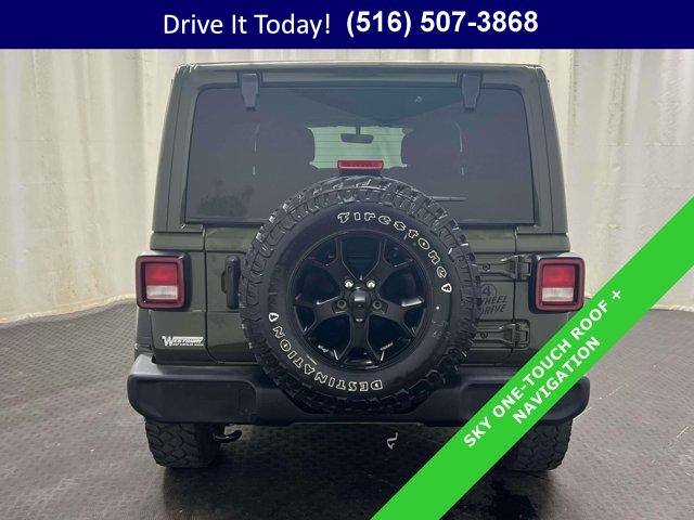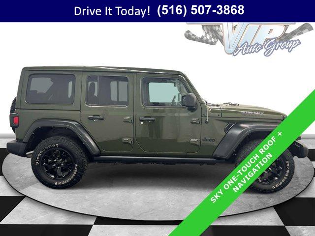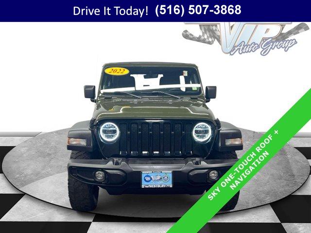 Certified 4WD capability meets open-air freedom in this 2022 Jeep Wrangler 4D Sport Utility. Finished in Sarge Green Clearcoat with Black cloth, it balances trail toughness with everyday comfort you can enjoy on the commute, the beach run, or a weekend escape. The 2.0L I4 DOHC pairs with an 8-speed automatic and 4WD for confident traction and smooth response. Willys equipment adds trail hardware and blacked-out style while keeping the ride composed and the cabin practical. Heated front seats and a heated steering wheel take the edge off cold mornings so you are ready for winter in NY without sacrificing comfort.Tap the Sky 1-Touch Power Top to go open air in seconds, then zip it closed when the weather turns. Removable rear quarter windows include a storage bag, and the rear defroster and wiper keep visibility clear. Corning Gorilla Glass helps resist chips from road debris. LED premium reflector headlamps and front LED fog lamps brighten dark roads and foul weather. The Anti-Spin Differential Rear Axle, 3.45 rear axle ratio, rock protection sill rails, black grille, Willys hood and swing gate decals, and 17-inch black wheels complete the Willys look with extra capability where it counts.Inside, an 8.4-inch multimedia display with Uconnect 4C Nav brings built-in GPS navigation, Apple CarPlay and Android Auto, HD Radio, and a deep, clear Alpine Premium Audio System. Stay connected with a 4G LTE Wi Fi Hot Spot, SiriusXM with Traffic and Travel Link, plus a 1 year SiriusXM Guardian trial with Emergency/Assistance Call. The 7.0-inch TFT color cluster shows Off-Road Info Pages so key vehicle data is right where you need it. ParkView Rear Back-Up Camera helps with tight parking, while automatic headlamps, a security alarm, auto-dimming rear-view mirror, power heated mirrors, air conditioning with automatic temperature control, deep tint sunscreen windows, a 115V outlet, multiple USB charge points, speed sensitive power locks, and steering wheel media controls dial up everyday ease & more.Odometer shows 35,965 miles. Outfitted with Quick Order Package 22W Willys, Cold Weather Group, Convenience Group, Technology Group, and the Sun and Sound Package, this certified Jeep Wrangler is set up for the Northeast with comfort, connectivity, and real capability.VIP+ ProgramEnjoy Unlimited Oil and Filter changes for 1 year, then included with every factory maintenance thereafter. You also receive Complimentary NYS Inspections, Complimentary Loaner Cars, and Complimentary 24/7 Rescue and Towing. These VIP+ benefits are For Life and Transferable, giving you long-term value well beyond the purchase.Purchase with confidence knowing this Jeep is a Certified Pre-Owned Vehicle (CPOV). Coverage includes a 7-Year / 100,000-Mile Powertrain Limited Warranty, a thorough 125-Point Inspection, 24-Hour Roadside Assistance, a Rental Car Allowance, and a CARFAX Vehicle History Report.More About UsEvery vehicle is hand selected for quality and long-term reliability, then reconditioned before sale so you can purchase with confidence. Our certified inventory meets strict standards, including brake life no less than 50 percent, to help ensure safety and durability from day one. As a proud member of the VIP Auto Group serving the community since 1957, we stand behind every sale with the promise, We Will Satisfy You!If you?re looking for a used car on Long Island that handles weekday commuting and weekend adventures, this Wrangler delivers commuter-friendly comfort, winter-ready traction, and the long-term value shoppers want. Its robust 4WD system, LED lighting, and heated amenities inspire confidence across New York while the Sky 1-Touch Power Top and Alpine audio keep every trip fun and convenient.Long Island or New York shoppers can call now, schedule a test drive, or learn more at WestburyJeep.com. Browse up-to-date inventory and current pricing, whether you are cross-shopping a used truck in new york or comparing an affordable used car. This overview is a general guide to the vehicle?s equipment and features and may vary by vehicle. Please confirm details with a product specialist.