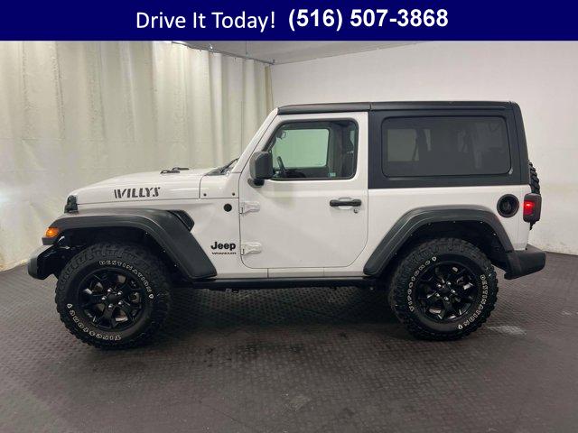 Factory-backed certification, true 4WD capability, and low miles for its age set this 2022 Jeep Wrangler 2D Sport Utility apart for daily commuting and weekend escapes in the Northeast. Finished in Bright White Clearcoat with Black cloth low-back bucket seats, it blends classic Jeep style with everyday comfort. The 3.6L V6 teams with a smooth-shifting 8-speed automatic for easy drivability around town and confident highway passing, while the Black 3-piece hard top and Deep Tint windows help keep the cabin quiet and comfortable through changing seasons. Automatic temperature control, supportive seating, and thoughtful storage make city errands and weekend trails feel equally effortless.The Willys package brings purposeful upgrades that matter when the weather turns or the road ends. An anti-spin rear differential, 3.45 rear gearing, rock protection sill rails, Bridgestone tires, and a bold black grille work with Jeep 4WD to deliver traction you can count on. LED Premium Reflector headlamps with front LED fog lamps light your path crisply in rain, snow, and early dawn, and Corning Gorilla Glass helps the windshield resist chips from winter grit. Inside, the Cold Weather Group keeps you comfortable with heated front seats and a heated steering wheel, while power heated mirrors clear quickly on frosty mornings. The Uconnect multimedia display with a 7.0-inch touchscreen supports Apple CarPlay and Google Android Auto for seamless maps, music, and calls, backed by 8 speakers, SiriusXM, integrated voice command with Bluetooth, and steering wheel media controls. Everyday convenience is built in with Front Door Locks Passive Entry, remote keyless entry, front 1-touch power windows, a 7.0-inch color driver cluster, universal garage door opener, rear defroster and wiper, automatic headlamps, a security alarm, and ParkView Rear Back-Up Camera & more.Lightly driven with only 19,242 miles, this Wrangler has low miles for its age, giving you added long-term value alongside Jeep?s legendary durability.VIP+ ProgramEvery purchase includes our VIP+ Program benefits for real peace of mind. Enjoy Unlimited Oil and Filter changes for 1 year, then included with every factory maintenance thereafter, plus Complimentary NYS Inspections, Complimentary Loaner Cars, and Complimentary 24/7 Rescue and Towing. These benefits are For Life and Transferable, maximizing value whether you keep your vehicle for years or pass it along to the next owner.Purchase With ConfidenceThis Certified Pre-Owned Vehicle (CPOV) adds factory-backed coverage and rigorous standards to your shopping experience. You receive a 7-Year / 100,000-Mile Powertrain Limited Warranty, a 125-Point Inspection, 24-Hour Roadside Assistance, Rental Car Allowance, and a CARFAX Vehicle History Report. Confidence comes standard with a certified Jeep Wrangler.More About UsOur vehicles are hand selected for quality and long-term reliability, then professionally reconditioned prior to sale so you can purchase with confidence. Certified vehicles meet strict standards, including brake life of no less than 50 percent. As a proud member of the VIP Auto Group serving the community since 1957, we stand behind every sale with one simple promise: We Will Satisfy You!If you?re looking for a used car on Long Island, this Wrangler?s blend of winter-ready traction, heated comforts, LED lighting, and a durable hard top makes daily commuting and weekend getaways easy. The Willys package adds the right hardware for confidence in slush, sand, and gravel, while the multimedia display with Apple CarPlay and Android Auto keeps you connected. It is a smart choice for safety, reliability, and long-term value in the Northeast, and an affordable used car that is as practical as it is fun.New York shoppers can call now, schedule a test drive, or explore current pricing and our up-to-date inventory at WestburyJeep.com. This description and feature list are intended as a general overview and may vary by vehicle. Please confirm exact equipment, availability, and warranty details with our team.