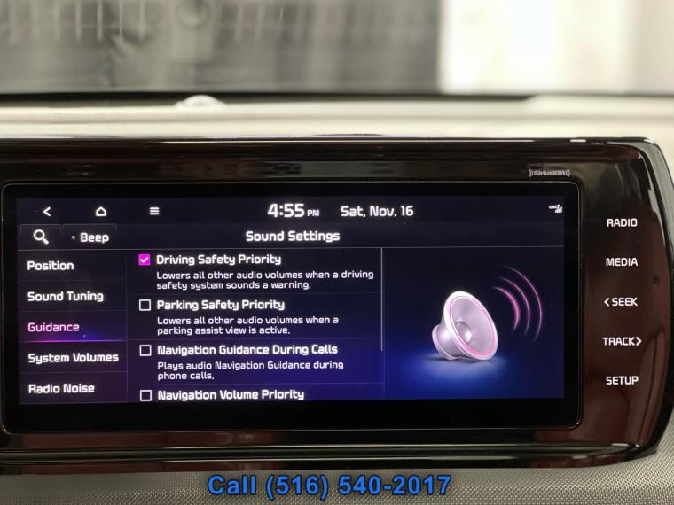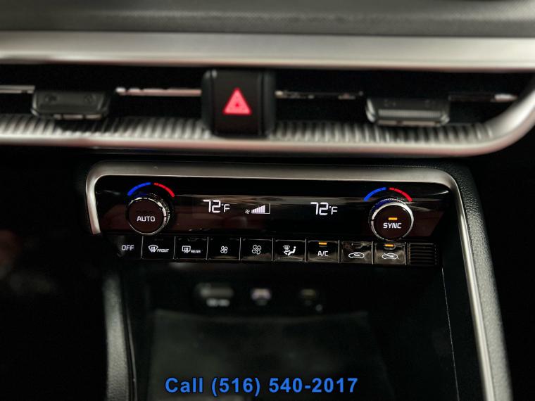 Sunroof/Moonroof, Remote Start, Navigation System, Leather Seats, Heated Seats, Bluetooth, Backup Camera, Driver seat: heated, Driver seat power adjustments: height lumbar, reclining, 10, Front headrests: adjustable 2, Front seat type: bucket, Passenger seat: heated, Passenger seat manual adjustments: height reclining, 6, Rear headrests: adjustable 3, Rear seat folding: split, Rear seat type: 60-40 split bench, Upholstery: cloth, Upholstery accents: leatherette, ABS: 4-wheel, Braking assist: , Electronic brakeforce distribution: , Electronic parking brake: auto off, Front brake diameter: 12.0, Front brake type: ventilated disc, Power brakes: , Rear brake diameter: 11.2, Rear brake type: disc, Alternator: 130 amps, Battery rating: 760 CCA, Battery saver: , Daytime running lights: LED, Exterior entry lights: approach lamps, Front fog lights: LED, Headlights: LED auto delay off, auto high beam dimmer, auto on/off, Taillights: LED, Automatic emergency braking: front front pedestrian, rear, Blind spot safety: sensor/alert, Camera system: rearview, Check rear seat reminder: , Child safety door locks: , Child seat anchors: LATCH system, Cross traffic alert: rear, Crumple zones: front rear, Driver attention alert system: , Emergency interior trunk release: , Impact sensor: door unlock, Lane deviation sensors: , Lane keeping assist: , Pre-collision warning system: audible warning pedestrian detection, visual warning, Rear pre-collision warning system: pedestrian detection, Rearview monitor: in dash, Vehicle exit safety system: , Airbag deactivation: occupant sensing passenger, Front airbags: dual, Knee airbags: driver, Side airbags: front rear, Side curtain airbags: front rear, Side mirror adjustments: power, Side mirrors: heated integrated turn signals, Front wipers: variable intermittent, Laminated glass: acoustic windshield, Power windows: safety reverse, Solar-tinted glass: , Window defogger: rear, Anti-theft system: alarm vehicle immobilizer, Power door locks: anti-lockout auto-locking, Steering ratio: 13.3, Turns lock-to-lock: 2.6, Emergency locking retractors: front, Front seatbelts: 3-point, Rear seatbelts: 3-point, Seatbelt pretensioners: front, Seatbelt warning sensor: front, 4WD type: on demand, Axle ratio: 3.37, Drive mode selector: , Front shock type: gas, Front spring type: coil, Front stabilizer bar: , Front struts: MacPherson, Front suspension classification: independent, Front suspension type: lower control arms, Rear shock type: gas, Rear spring type: coil, Rear stabilizer bar: , Rear suspension classification: independent, Rear suspension type: multi-link, Driver assistance app: roadside assistance, Electronic messaging assistance: voice operated with read function, Hands-free phone call integration: voice operated, Navigation system: hard drive touch screen display, voice operated, Smart device app compatibility: Kia MyUVO, Smart device app function: engine start horn/light operation, lock operation, maintenance scheduling, maintenance status, vehicle location, Wireless data link: Bluetooth, Antenna type: diversity mast, Auxiliary audio input: Bluetooth USB, iPod/iPhone, Radio: AM/FM HD radio, touch screen display, voice operated, Radio data system: , Satellite radio: SiriusXM, Speed sensitive volume control: , Total speakers: 6, Spare tire mount location: inside, Spare tire size: temporary, Spare wheel type: steel, Tire Pressure Monitoring System: , Tire type: all season, Wheels: painted aluminum alloy, Clock: , Compass: , Digital odometer: , External temperature display: , Fuel economy display: MPG range, Gauge: tachometer, Instrument cluster screen size: 4.2 in., Multi-function display: , Trip odometer: , Warnings and reminders: low fuel level low washer fluid, Air filtration: , Front air conditioning: automatic climate control, Front air conditioning zones: dual, Armrests: rear center with cupholders rear folding, Center console trim: metallic, Dash trim: metallic, Door sill trim: scuff plate, Floor material: carpet, Interior accents: metallic-tone, Shift knob trim: urethane, Steering wheel trim: leather, Body side moldings: body-color, Door handle color: body-color, Exhaust: dual tip integrated, Exhaust tip color: chrome, Front bumper color: body-color, Grille color: silver, Mirror color: black, Rear bumper color: body-color, Rear spoiler: lip, Rear spoiler color: black, Rear trunk/liftgate: power operated sensor-activated, Skid plate(s): rear, Window trim: black, Assist handle: front rear, Autonomous lane guidance: lane centering, Cargo area light: , Center console: front console with armrest and storage, Cruise control: , Cupholders: front rear, Multi-function remote: panic alarm proximity entry system, trunk release, One-touch windows: 2, Overhead console: front, Power outlet(s): 12V front USB front, USB rear, Power steering: , Power windows: lockout button, Push-button start: , Reading lights: front, Rearview mirror: manual day/night, Remote engine start: , Steering wheel: tilt and telescopic, Steering wheel mounted controls: audio cruise control, phone, Storage: accessory hook door pockets, front seatback, Vanity mirrors: dual illuminating, Wireless charging station: front, Connected in-car apps: Google POIs Google search, Infotainment: UVO, Infotainment screen size: 10.25 in., Smartphone integration: Android Auto Apple CarPlay, Hill holder control: , Stability control: , Traction control: