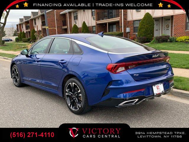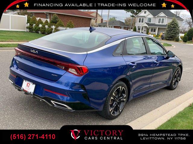 All pricing and details are believed to be accurate, but we do not warrant or guarantee such accuracy. The prices shown above may vary from region to region, as will incentives, and are subject to change. All cars are sold cosmetically As-Is. Vehicle information is based on standard equipment and may vary from vehicle to vehicle. Call or email for complete vehicle specific information. Price Does not include tax, title, license, destination charges, finance charges, or any reconditioning fees. Our special Internet pricing cannot be extended without a printed copy of the online pricing. The in-store price may exceed our special online pricing. Sorry but we cannot extend special pricing without a printed copy of the on-line pricing. To take advantage of our special Internet discounts, please print this page and present it to your salesperson at the BEGINNING of the transaction. Special Internet pricing posted on this ad/coupon/promotion is only available to customers who reference such pricing & present the ad at time of sale otherwise our store standard list price applies. Please be advised this ad is a Special Internet only ad. Prices can be modified and adjusted weekly, daily and sometimes hourly due to inquiries, bidding and website traffic on any Vehicles. All displayed inventory is subject to prior sale and all prices expire at midnight on the date displayed. Every reasonable effort has been made to ensure the accuracy of the information contained on this site, however absolute accuracy cannot be guaranteed. Advertised special excludes state tax, title, license, registration, NY state inspection, NYS tire recycling fee, finance charges, and dealer fees if applicable. Please verify any information in question with the dealership sales manager. This is easily done by calling us at (516) 271-4110 or by visiting us at the dealership. **With approved credit. Sapphire Blue 2022 Kia K5 GT-Line FWD 8-Speed Automatic I4