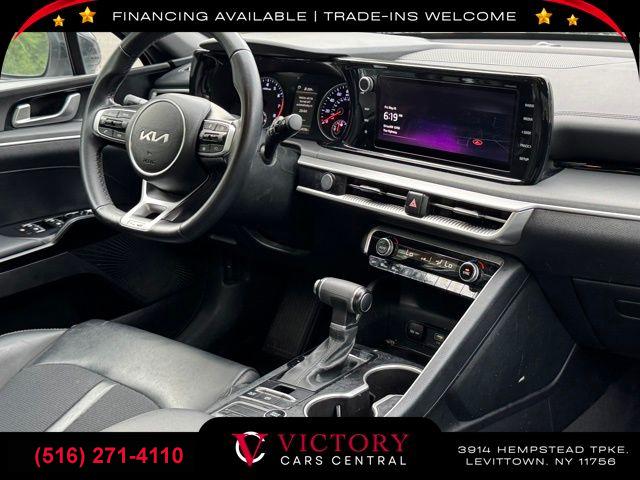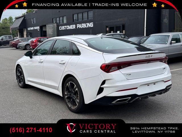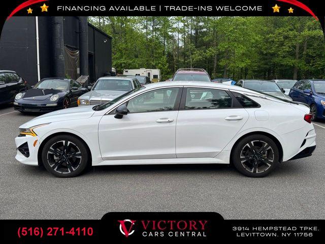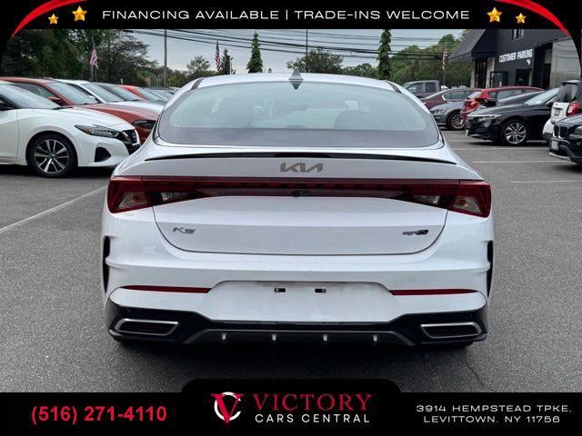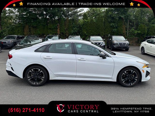 • All pricing and details are believed to be accurate, but we do not warrant or guarantee such accuracy. The prices shown above may vary from region to region, as will incentives, and are subject to change. All cars are sold cosmetically As-Is. Vehicle information is based on standard equipment and may vary from vehicle to vehicle. Call or email for complete vehicle specific information. Price Does not include tax, title, license, destination charges, finance charges, or any reconditioning fees. Our special Internet pricing cannot be extended without a printed copy of the online pricing. The in-store price may exceed our special online pricing. Sorry but we cannot extend special pricing without a printed copy of the on-line pricing. To take advantage of our special Internet discounts, please print this page and present it to your salesperson at the BEGINNING of the transaction. Special Internet pricing posted on this ad/coupon/promotion is only available to customers who reference such pricing & present the ad at time of sale otherwise our store standard list price applies. Please be advised this ad is a Special Internet only ad. Prices can be modified and adjusted weekly, daily and sometimes hourly due to inquiries, bidding and website traffic on any Vehicles. All displayed inventory is subject to prior sale and all prices expire at midnight on the date displayed. Every reasonable effort has been made to ensure the accuracy of the information contained on this site, however absolute accuracy cannot be guaranteed. Advertised special excludes state tax, title, license, registration, NY state inspection, NYS tire recycling fee, finance charges, and dealer fees if applicable. Please verify any information in question with the dealership sales manager. This is easily done by calling us at (516) 271-4110 or by visiting us at the dealership. **With approved credit. Glacial White Pearl 2022 Kia K5 GT-Line FWD 8-Speed Automatic I4
