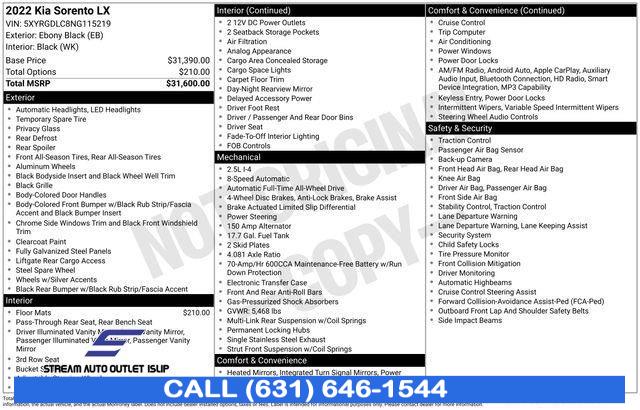 For more information on this 2022 Kia Sorento, please call Stream Auto Outlet Islip at (631) 646-1544 or with the contact form on this page. This vehicle's vin number is 5XYRGDLC8NG115219 and is recorded as being in stock at Stream Auto Outlet Islip at 2232 Sunrise Hwy in Islip. See all cars from this dealership.
