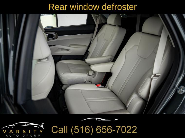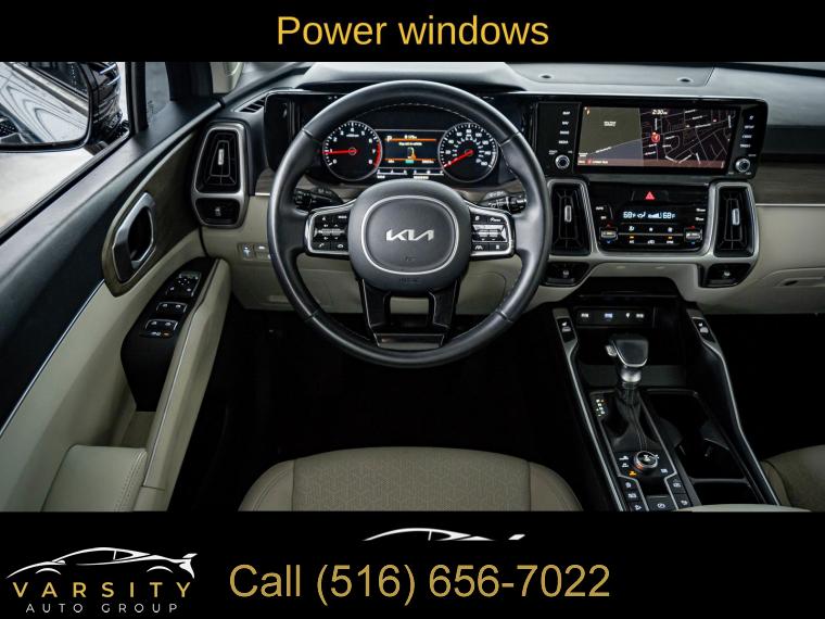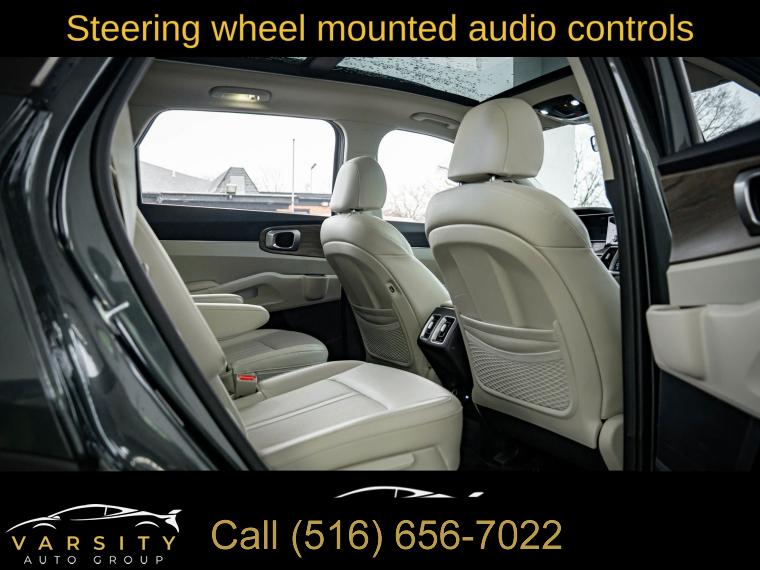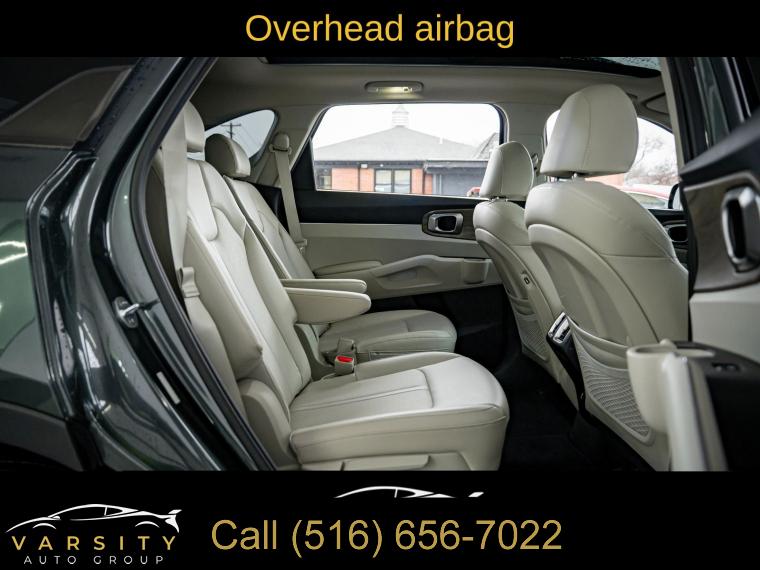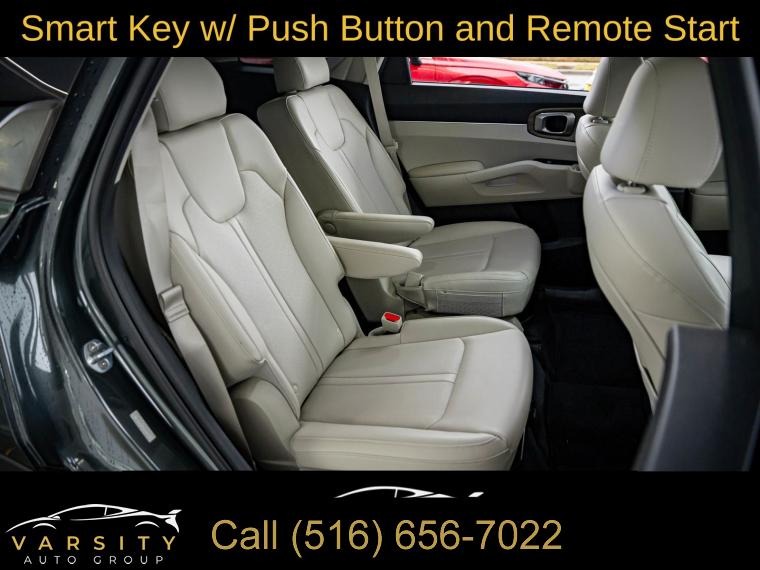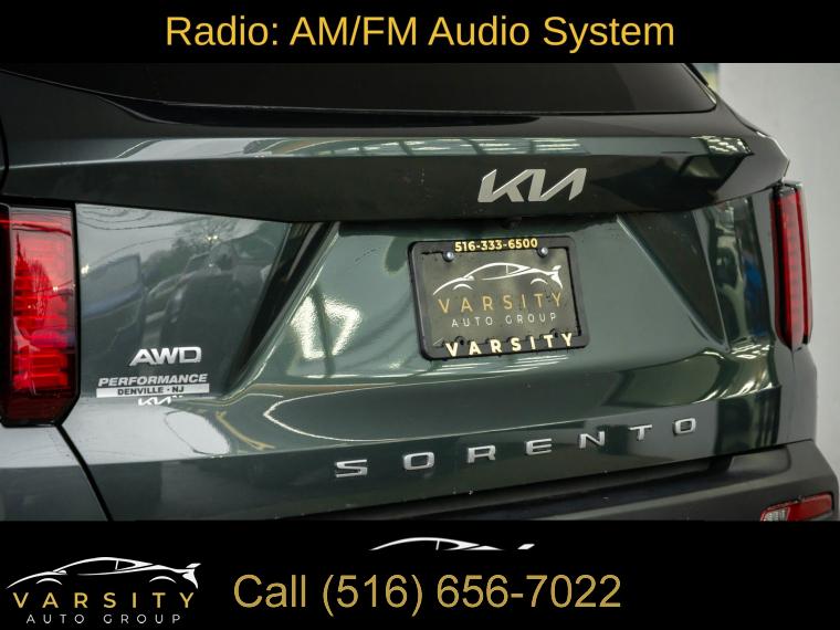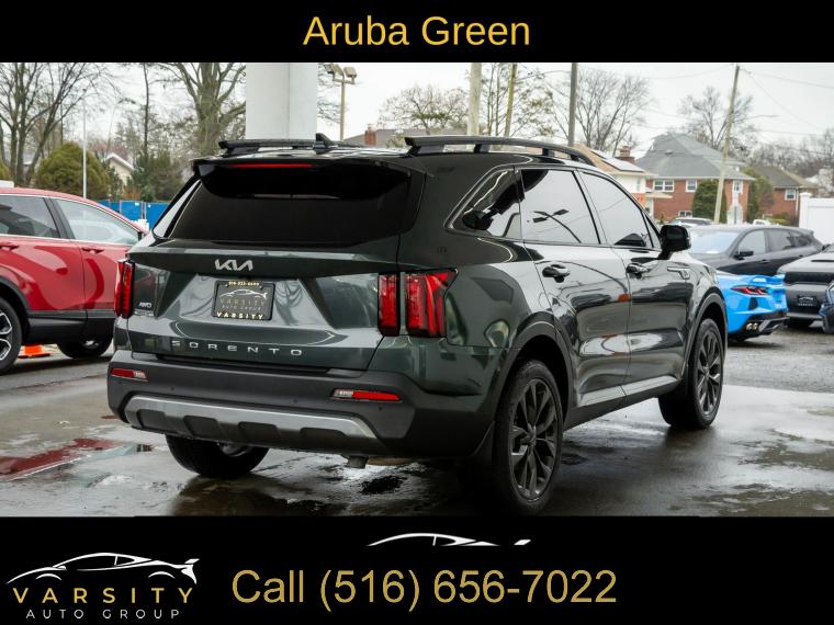 Navigation System, 6 Speakers, AM/FM radio: SiriusXM, Radio data system, Radio: AM/FM Audio System, Air Conditioning, Automatic temperature control, Front dual zone A/C, Rear air conditioning, Rear window defroster, Power driver seat, Power steering, Power windows, Remote keyless entry, Smart Key w/ Push Button and Remote Start, Steering wheel mounted audio controls, Four wheel independent suspension, Speed-sensing steering, Traction control, 4-Wheel Disc Brakes, ABS brakes, Dual front impact airbags, Dual front side impact airbags, Emergency communication system: UVO Link, Front anti-roll bar, Knee airbag, Low tire pressure warning, Occupant sensing airbag, Overhead airbag, Rear anti-roll bar, Power moonroof, Power Liftgate, Brake assist, Electronic Stability Control, Exterior Parking Camera Rear, Auto High-beam Headlights, Delay-off headlights, Front fog lights, Fully automatic headlights, Panic alarm, Security system, Speed control, Bumpers: body-color, Heated door mirrors, Power door mirrors, Roof rack: rails only, Spoiler, Turn signal indicator mirrors, Apple CarPlay & Android Auto, Carpeted Cargo Mat w/Seatback Protection, Carpeted Floor Mats, Driver door bin, Driver vanity mirror, Front reading lights, Illuminated entry, Leather Shift Knob, Leather steering wheel, Outside temperature display, Overhead console, Passenger vanity mirror, Rear reading lights, Tachometer, Telescoping steering wheel, Tilt steering wheel, Trip computer, 3rd row seats: split-bench, Front Bucket Seats, Front Center Armrest, Heated Front Bucket Seats, Heated front seats, Split folding rear seat, SynTex Artificial Leather Seat Trim, Cargo Net, Passenger door bin, Alloy wheels, Wheels: 8.5J x 20" Matte Gray Alloy, Rear window wiper, Variably intermittent wipers, 3.316 Axle Ratio, The Price you See, is the Price You Pay!!!, 2022 Kia Sorento X-Line EX, Aruba Green, Gray w/SynTex Artificial Leather Seat Trim, Clean CARFAX