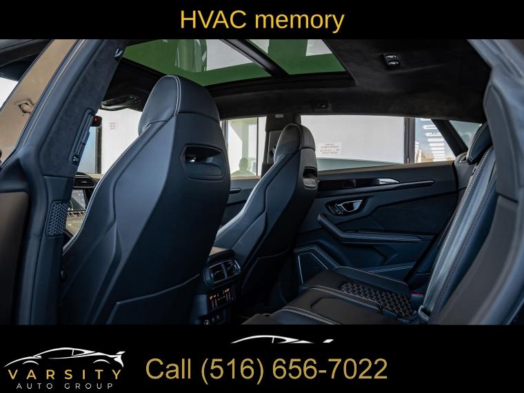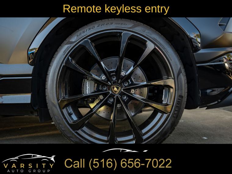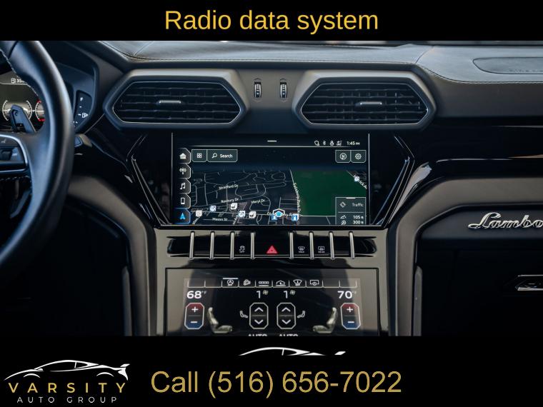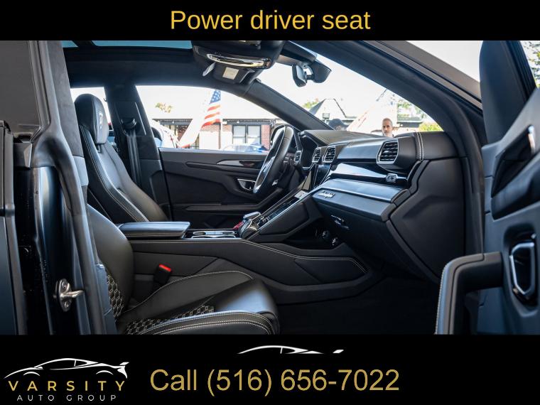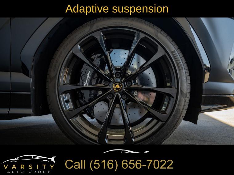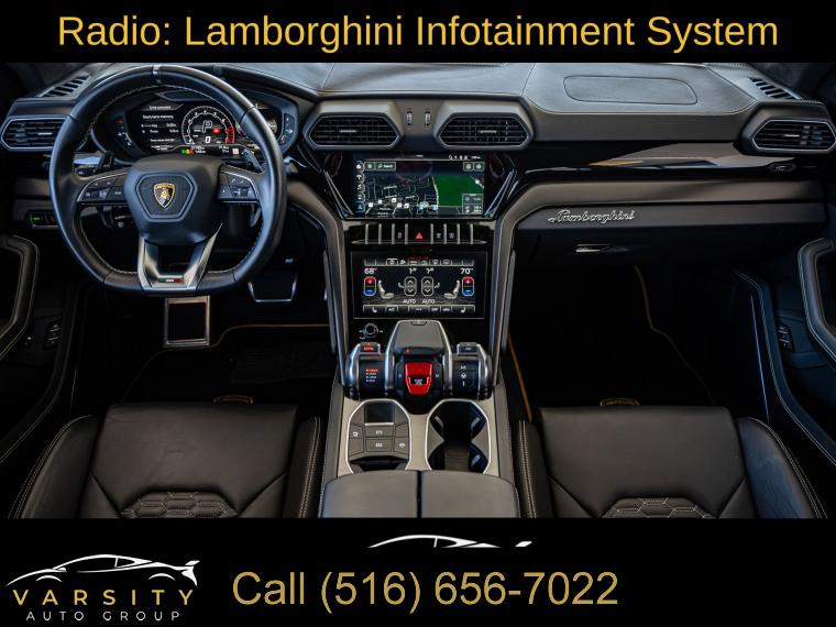 Navigation System, 8 Speakers, AM/FM radio, Audio memory, CD player, DVD-Audio, Radio data system, Radio: Lamborghini Infotainment System, Air Conditioning, Automatic temperature control, Front dual zone A/C, HVAC memory, Rear air conditioning, Rear dual zone A/C, Rear window defroster, Heads-Up Display, Memory seat, Power driver seat, Power steering, Power windows, Remote keyless entry, Steering wheel mounted A/C controls, Steering wheel mounted audio controls, Adaptive suspension, Four wheel independent suspension, Speed-sensing steering, Traction control, 4-Wheel Disc Brakes, ABS brakes, Ceramic disc brakes: front and rear, Dual front impact airbags, Dual front side impact airbags, Emergency communication system, Front anti-roll bar, Low tire pressure warning, Occupant sensing airbag, Overhead airbag, Rear anti-roll bar, Power Liftgate, Brake assist, Electronic Stability Control, Exterior Parking Camera Rear, Auto High-beam Headlights, Delay-off headlights, Fully automatic headlights, Panic alarm, Security system, Active Cruise Control, Speed control, Auto-dimming door mirrors, Bumpers: body-color, Door auto-latch, Heated door mirrors, Power door mirrors, Spoiler, Turn signal indicator mirrors, Apple CarPlay/Android Auto, Auto-dimming Rear-View mirror, Compass, Driver door bin, Driver vanity mirror, Front reading lights, Garage door transmitter: HomeLink, Illuminated entry, Leather steering wheel, Outside temperature display, Overhead console, Passenger vanity mirror, Rear reading lights, Rear seat center armrest, Tachometer, Telescoping steering wheel, Tilt steering wheel, Trip computer, Voltmeter, Front Bucket Seats, Front Center Armrest, Heated Front Bucket Seats, Heated front seats, Power passenger seat, Split folding rear seat, Unicolor Leather Seat Upholstery, Passenger door bin, Alloy wheels, Wheels: 21" x 9.5J Fr & 21" x 10.5J Rr Asterope Silver, Rain sensing wipers, Speed-Sensitive Wipers, Variably intermittent wipers, Axle Ratio: TBD, 2022 Lamborghini Urus, Nero Noctis Matt, Nero Ade w/Unicolor Leather Seat Upholstery, 4.0L Twin Turbocharged V8