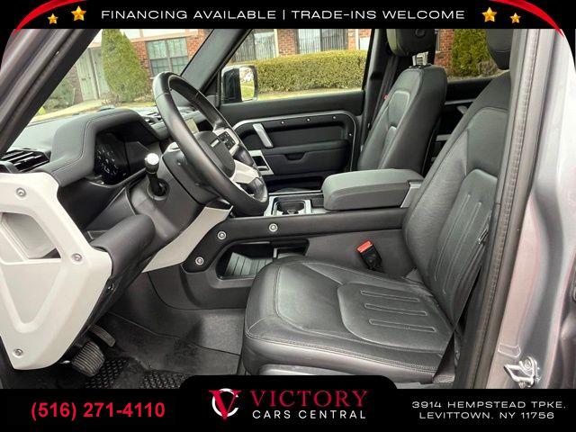 All pricing and details are believed to be accurate, but we do not warrant or guarantee such accuracy. The prices shown above may vary from region to region, as will incentives, and are subject to change. All cars are sold cosmetically As-Is. Vehicle information is based on standard equipment and may vary from vehicle to vehicle. Call or email for complete vehicle specific information. Price Does not include tax, title, license, destination charges, finance charges, or any reconditioning fees. Our special Internet pricing cannot be extended without a printed copy of the online pricing. The in-store price may exceed our special online pricing. Sorry but we cannot extend special pricing without a printed copy of the on-line pricing. To take advantage of our special Internet discounts, please print this page and present it to your salesperson at the BEGINNING of the transaction. Special Internet pricing posted on this ad/coupon/promotion is only available to customers who reference such pricing & present the ad at time of sale otherwise our store standard list price applies. Please be advised this ad is a Special Internet only ad. Prices can be modified and adjusted weekly, daily and sometimes hourly due to inquiries, bidding and website traffic on any Vehicles. All displayed inventory is subject to prior sale and all prices expire at midnight on the date displayed. Every reasonable effort has been made to ensure the accuracy of the information contained on this site, however absolute accuracy cannot be guaranteed. Advertised special excludes state tax, title, license, registration, NY state inspection, NYS tire recycling fee, finance charges, and dealer fees if applicable. Please verify any information in question with the dealership sales manager. This is easily done by calling us at (516) 271-4110 or by visiting us at the dealership. **With approved credit. Gray 2022 Land Rover Defender 110 X-Dynamic SE 4WD 8-Speed Automatic 3.0L I6