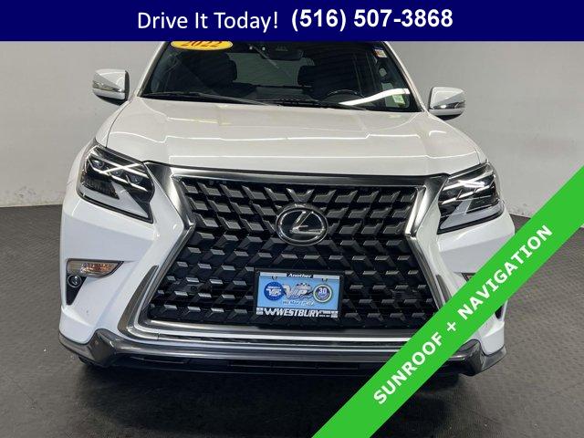 Full-time 4WD confidence and a smooth 6-speed automatic meet proven V8 strength in this 2022 Lexus GX 4D Sport Utility, a refined luxury SUV built for Northeast commutes, school runs, and weekend escapes. Finished in White with NuLuxe synthetic leather seating, it delivers a quiet, composed ride with seating for the family, an airy power moonroof, and thoughtful touches like illuminated running boards that make daily use simple and comfortable.This GX blends comfort with capability. The 4.6L V8 DOHC Dual VVT-i 32V provides confident acceleration for merging and passing, while the 4WD system adds traction when the weather turns. Inside, supportive front bucket seats, a leather-wrapped steering wheel with memory, and an auto tilt-away function make every drive feel tailored. Split-folding 3rd-row seats give you cargo flexibility for gear and groceries alike, and roof rails stand ready for extra hauling when adventure calls.Stay connected and in command with a clear multimedia display powered by the Lexus Multimedia System, built-in Navigation System, and Apple CarPlay and Android Auto for seamless smartphone integration. Enjoy AM/FM radio with SiriusXM and 9 speakers. Convenience is everywhere, including a HomeLink garage door transmitter, auto-dimming rearview mirror, compass, trip computer, steering wheel media controls, and remote keyless entry. Confidence comes from multiple airbags including knee airbags, a rearview camera, emergency communication system, Electronic Stability Control, Traction Control, 4-wheel disc ABS brakes, auto high-beam and fully automatic headlights, heated exterior mirrors, front and rear anti-roll bars, and more.This example shows 56,960 miles, backed by the kind of craftsmanship and durability Lexus is known for. It is a smart choice if you want luxury comfort with everyday usability and the surefootedness to handle changing Northeast seasons.VIP+ ProgramDrive with long-term value built in. Our VIP+ Program includes Unlimited Oil and Filter changes for 1 year, then included with every factory maintenance thereafter. You also receive Complimentary NYS Inspections, Complimentary Loaner Cars, and Complimentary 24/7 Rescue and Towing. These benefits are For Life and Transferable, adding real peace of mind for you and the next owner.Purchase with confidence thanks to straightforward guidance from our team, an easy test-drive experience, and transparent pricing from start to finish.More About UsEvery vehicle is hand selected for quality and long-term reliability, and comprehensive reconditioning is completed prior to sale so you can purchase with confidence. Our certified vehicles meet strict standards, including brake life no less than 50 percent, to help ensure safety and satisfaction. Trust, preparation, and peace of mind guide everything we do. We are a proud member of the VIP Auto Group serving the local community since 1957. We Will Satisfy You!If you?re looking for a used car on Long Island or an affordable used car for your NY driveway, this GX brings commuter-friendly comfort, winter-ready traction, and Lexus-level reliability. The 4WD system, auto high-beam headlights, and heated mirrors inspire confidence when the weather gets messy, while the split-folding 3rd row and roof rails make family life easier. Strong safety fundamentals and multiple airbags help protect what matters, and the V8 is built for the long haul, supporting lasting value over years of ownership.Shoppers in New York can call now, schedule a test drive, or learn more at WestburyJeep.com, where you can view up-to-date inventory and current pricing. Description and features are intended as a general overview and may vary by vehicle. Please confirm exact equipment at time of purchase.