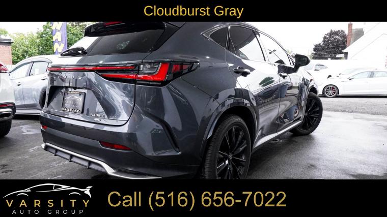 F SPORT Handling Package, Towing Package (2000 lbs), 10 Speakers, AM/FM radio: SiriusXM, Radio data system, Radio: 10-Speaker Sound System, Air Conditioning, Automatic temperature control, Front dual zone A/C, Rear window defroster, Heads-Up Display, Power Back Door, Power driver seat, Power steering, Power windows, Remote keyless entry, Steering wheel mounted audio controls, Adaptive suspension, Four wheel independent suspension, Speed-sensing steering, Traction control, 4-Wheel Disc Brakes, ABS brakes, Anti-whiplash front head restraints, Dual front impact airbags, Dual front side impact airbags, Emergency communication system: Safety Connect, Front anti-roll bar, Knee airbag, Low tire pressure warning, Occupant sensing airbag, Overhead airbag, Rear anti-roll bar, Wireless Smart Door Lock, Brake assist, Electronic Stability Control, Exterior Parking Camera Rear, Auto High-beam Headlights, Delay-off headlights, Front fog lights, Fully automatic headlights, Key Gloves (PPO), Panic alarm, Security system, Speed control, Auto-dimming door mirrors, Bumpers: body-color, Heated door mirrors, Power door mirrors, Premium Paint (PC), Roof rack: rails only, Spoiler, Turn signal indicator mirrors, All Weather Cargo Mat (PPO), Aluminum Door Trim, Auto tilt-away steering wheel, Auto-dimming Rear-View mirror, Driver door bin, Driver vanity mirror, F SPORT Heated Front Bucket Seats, Front reading lights, Garage door transmitter: HomeLink, Illuminated entry, Leather Shift Knob, Outside temperature display, Overhead console, Parking Support Alert/Brake, Passenger vanity mirror, Power Steering Column, Rear reading lights, Rear seat center armrest, Sport steering wheel, Tachometer, Telescoping steering wheel, Tilt steering wheel, Trip computer, Wireless Apple CarPlay/Wireless Android Auto, F SPORT NuLuxe Seat Trim, Front Center Armrest, Heated front seats, Power passenger seat, Split folding rear seat, Cargo Net (PPO), Passenger door bin, 20" Wheels, Alloy Wheel Locks, Alloy wheels, Auto Rain Sensing Windshield Wipers, Rear window wiper, Variably intermittent wipers, Axle Ratio: 3.329, The Price you See, is the Price You Pay!!!, NX 350 F SPORT Handling, Cloudburst Gray, Clean CARFAX