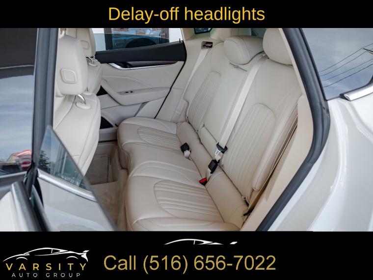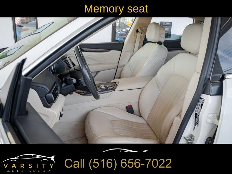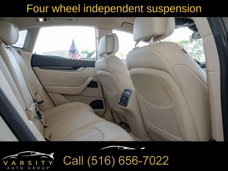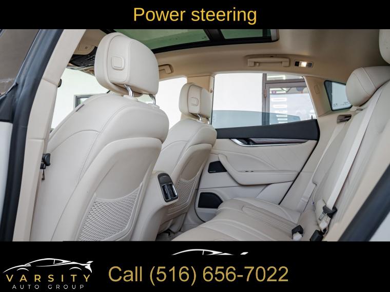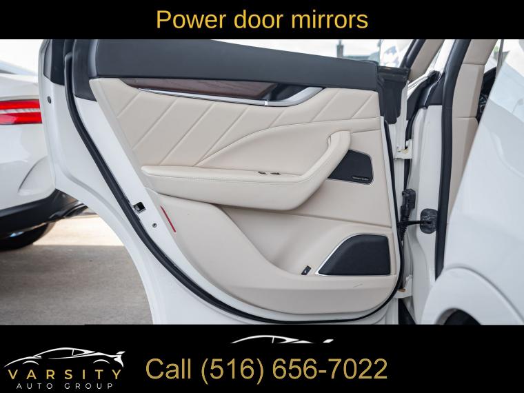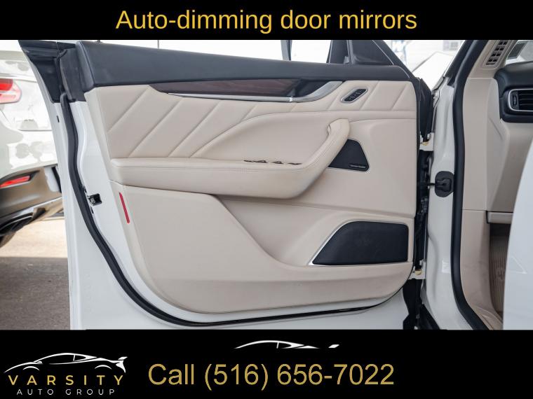 Navigation System, 280 Watts Maserati Audio System, 8 Speakers, AM/FM radio: SiriusXM, Radio data system, Radio: AM/FM w/Maserati Intelligent Assistant, Air Conditioning, Automatic temperature control, Front dual zone A/C, Rear window defroster, Memory seat, Power driver seat, Power steering, Power windows, Remote keyless entry, Steering wheel memory, Steering wheel mounted audio controls, Adaptive suspension, Auto-leveling suspension, Four wheel independent suspension, Speed-sensing steering, Traction control, 4-Wheel Disc Brakes, ABS brakes, Anti-whiplash front head restraints, Dual front impact airbags, Dual front side impact airbags, Emergency communication system: Maserati Connect, Front anti-roll bar, Low tire pressure warning, Occupant sensing airbag, Overhead airbag, Rear anti-roll bar, Power moonroof, Power Liftgate, Brake assist, Electronic Stability Control, Exterior Parking Camera Rear, Auto High-beam Headlights, Delay-off headlights, Front fog lights, High intensity discharge headlights: Bi-Xenon, Rear fog lights, Security system, Speed control, Auto-dimming door mirrors, Bumpers: body-color, Heated door mirrors, Power door mirrors, Spoiler, Turn signal indicator mirrors, 12-Way Heated Power Front Seats, Apple CarPlay/Android Auto, Auto-dimming Rear-View mirror, Compass, Driver door bin, Driver vanity mirror, Front reading lights, Garage door transmitter: HomeLink, Heated steering wheel, Illuminated entry, Leather Shift Knob, Leather steering wheel, Outside temperature display, Overhead console, Passenger vanity mirror, Rear reading lights, Rear seat center armrest, Sport steering wheel, Tachometer, Telescoping steering wheel, Tilt steering wheel, Trip computer, Voltmeter, Front Bucket Seats, Front Center Armrest, Heated front seats, Power passenger seat, Split folding rear seat, Zegna Silk & Leather Upholstery, Passenger door bin, 20" Wheels, Alloy wheels, Wheels: 20" Dark Grey Nereo Miron Staggered, Rain sensing wipers, Rear window wiper, Speed-Sensitive Wipers, Variably intermittent wipers, 3.27 Axle Ratio, The Price you See, is the Price You Pay!!!