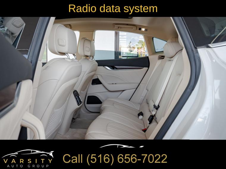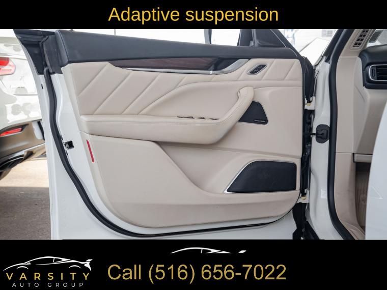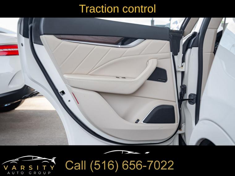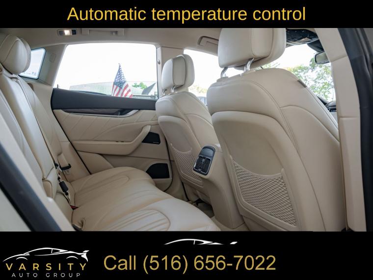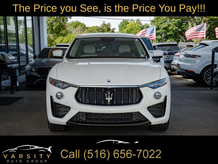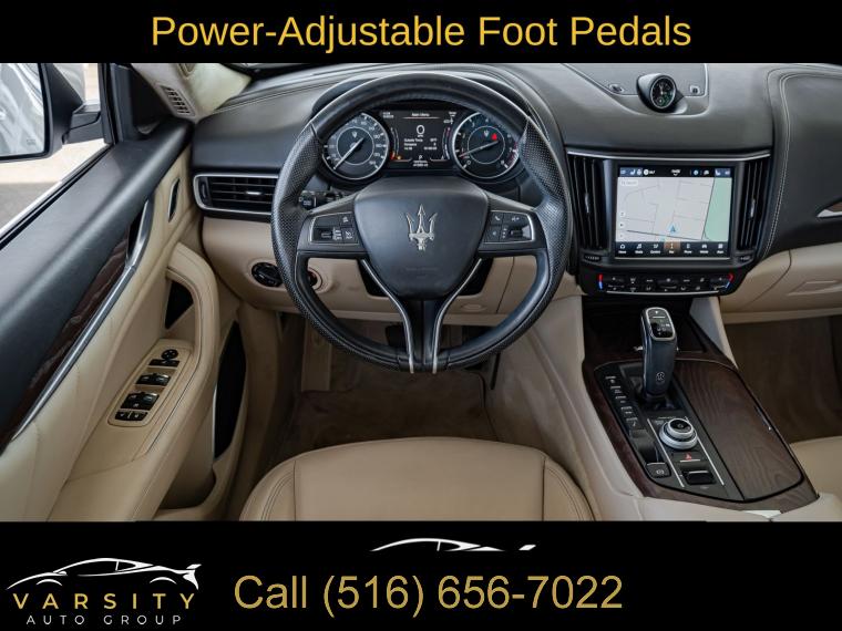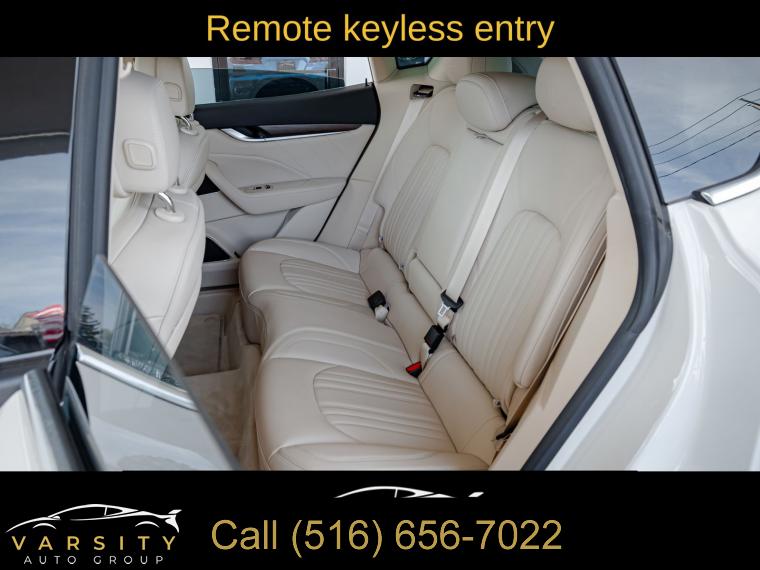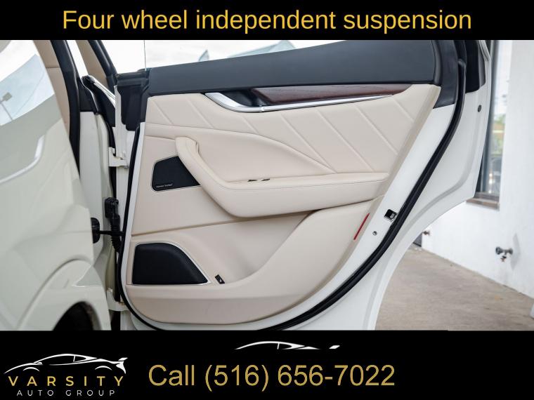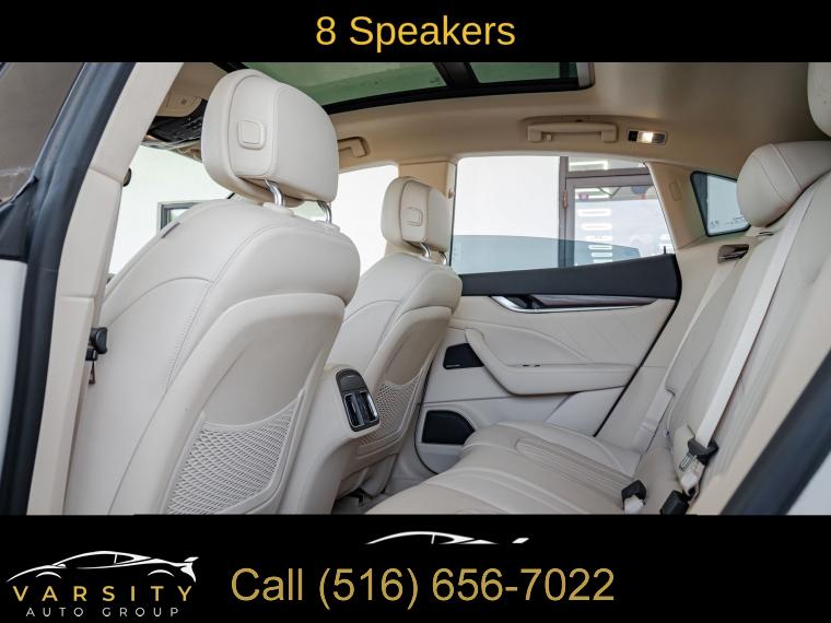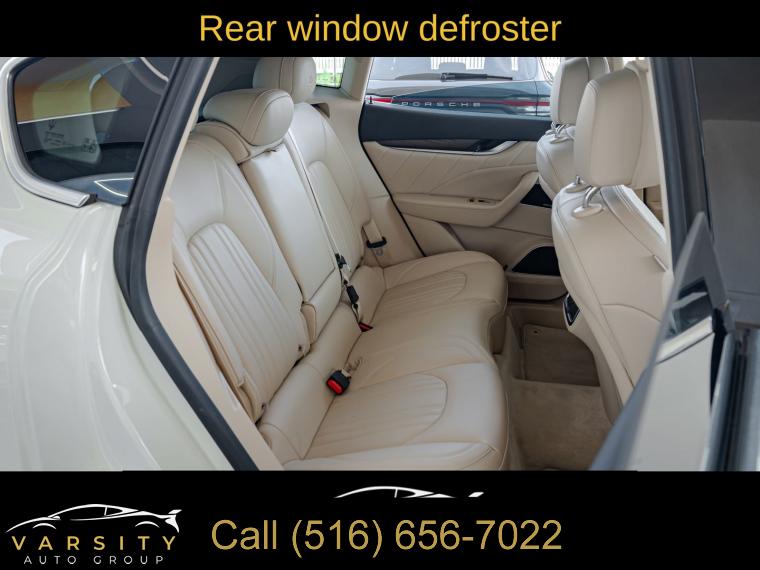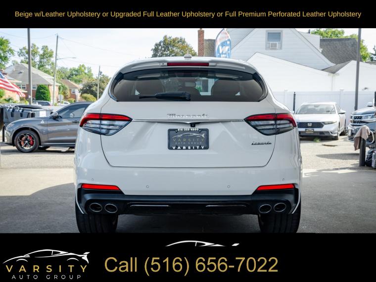 Navigation System, Comfort & Convenience Package, 280 Watts Maserati Audio System, 8 Speakers, AM/FM radio: SiriusXM, harman/kardon 900 Watts Premium Audio System, Radio data system, Radio: AM/FM w/Maserati Intelligent Assistant, Air Conditioning, Automatic temperature control, Front dual zone A/C, Rear window defroster, Heated Rear Seats, Memory seat, Power driver seat, Power steering, Power windows, Power-Adjustable Foot Pedals, Remote keyless entry, Soft-Close Doors, Steering wheel memory, Steering wheel mounted audio controls, Adaptive suspension, Auto-leveling suspension, Four wheel independent suspension, Speed-sensing steering, Traction control, 4-Wheel Disc Brakes, ABS brakes, Anti-whiplash front head restraints, Dual front impact airbags, Dual front side impact airbags, Emergency communication system: Maserati Connect, Front anti-roll bar, Gloss Yellow Painted Brake Calipers, Low tire pressure warning, Occupant sensing airbag, Overhead airbag, Rear anti-roll bar, Power moonroof, Power Liftgate, Brake assist, Electronic Stability Control, Exterior Parking Camera Rear, Auto High-beam Headlights, Delay-off headlights, Front fog lights, High intensity discharge headlights: Bi-Xenon, Rear fog lights, Security system, Speed control, Auto-dimming door mirrors, Bumpers: body-color, Heated door mirrors, Power door mirrors, Spoiler, Turn signal indicator mirrors, 12-Way Heated Power Front Seats, Apple CarPlay/Android Auto, Auto-dimming Rear-View mirror, Compass, Driver door bin, Driver vanity mirror, Front reading lights, Garage door transmitter: HomeLink, Heated steering wheel, Illuminated entry, Leather Shift Knob, Leather steering wheel, Outside temperature display, Overhead console, Passenger vanity mirror, Rear reading lights, Rear seat center armrest, Sport steering wheel, Tachometer, Telescoping steering wheel, Tilt steering wheel, Trip computer, Voltmeter, Front Bucket Seats, Front Center Armrest, Heated front seats, Power passenger seat, Split folding rear seat, Ventilated Front Seats, Zegna Silk & Leather Upholstery, Passenger door bin, Alloy wheels, Wheels: 20" Dark Grey Nereo Miron Staggered, Heated Windshield Washer Nozzles, Rain sensing wipers, Rear window wiper, Speed-Sensitive Wipers, Variably intermittent wipers, 3.27 Axle Ratio, The Price you See, is the Price You Pay!!!, Maserati Levante Modena, Bianco exterior paint, Beige w/Leather Upholstery or Upgraded Full Leather Upholstery or Full Premium Perforated Leather Upholstery