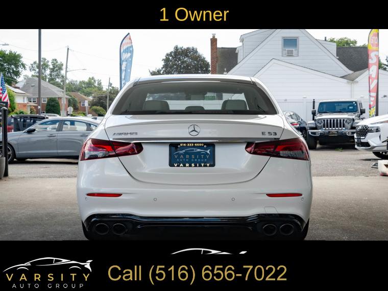 The Price you See, is the Price You Pay!!!, Mercedes-Benz E 53 AMG, 4MATIC, 1 Owner, Clean CARFAX, Low Miles, 4MATIC®, 13 Speakers, 4-Way Lumbar Support, 4-Wheel Disc Brakes, ABS brakes, Active Brake Assist w/Cross-Traffic Function, Active Distance Assist DISTRONIC®, Active Lane Change Assist, Active Multicontour Front Seats w/Massage Feature, Active Speed Limit Assist, Active Steering Assist, Adaptive suspension, Air Conditioning, Alloy wheels, AM/FM radio: SiriusXM, AMG® Night Package, Android Auto®, Anti-whiplash front head restraints, Apple CarPlay®, Apple CarPlay®/Android Auto®, Augmented Video (DISC), Auto tilt-away steering wheel, Auto-dimming door mirrors, Auto-dimming Rear-View mirror, Auto-leveling suspension, Automatic temperature control, Black Seatbelts, Brake assist, Brown Ash Wood Center Console, Bumpers: body-color, Burmester® Surround Sound System, Dark Tinted Grille, Delay-off headlights, Driver Assistance Package, Driver door bin, Driver vanity mirror, Dual front impact airbags, Dual front side impact airbags, Electronic Stability Control, Emergency communication system: eCall Emergency System, Extended Restart by Stop & Go, Exterior Lighting Package, Exterior Parking Camera Rear, Four wheel independent suspension, Front anti-roll bar, Front Bucket Seats, Front Center Armrest, Front dual zone A/C, Front reading lights, Fully automatic headlights, Garage door transmitter: HomeLink, Genuine wood console insert, Genuine wood dashboard insert, Genuine wood door panel insert, HANDS-FREE ACCESS Credit Code, HD Radio, Head restraints memory, Heated & Ventilated Front Seats, Heated Armrests, Heated door mirrors, Heated Front Seats, Heated front seats, Heated Power Front Seats w/Memory, Heated steering wheel, High-Gloss Black Elements, Illuminated entry, Inductive Wireless Charging w/NFC Pairing, Knee airbag, Leather Shift Knob, LED Intelligent Light System, Low tire pressure warning, MB-Tex/DINAMICA Upholstery, Memory seat, Natural Grain Brown Ash Wood Center Console, Navigation System, Occupant sensing airbag, Omission of Dark Tinted Glass, Outside temperature display, Overhead airbag, Overhead console, Panic alarm, Panorama Roof, Passenger door bin, Passenger vanity mirror, Power adjustable front head restraints, Power adjustable rear head restraints, Power door mirrors, Power driver seat, Power moonroof, Power passenger seat, Power Rear Window Sunshade, Power steering, Power windows, PRE-SAFE® Impulse Side, PRE-SAFE® PLUS Rear End Collision Protection, Premium audio system: MBUX, Radio data system, Radio: MBUX Infotainment System w/Navigation, Rain sensing wipers, Rapid Heating Functionality for Front Seats, Rear anti-roll bar, Rear fog lights, Rear reading lights, Rear seat center armrest, Rear window defroster, Remote keyless entry, Route Based Speed Adaptation, Security system, SiriusXM Radio, Smartphone Integration, Speed control, Speed-sensing steering, Split folding rear seat, Spoiler, Sport steering wheel, Steering wheel memory, Steering wheel mounted audio controls, Tachometer, Telescoping steering wheel, Tilt steering wheel, Traction control, Trip computer, Turn signal indicator mirrors, Variably intermittent wipers, Warmth & Comfort Package, Weather band radio, Wheels: 19" AMG® Twin 5-Spoke w/Grey Accents. White 2022 Mercedes-Benz E-Class E 53 AMG® 4MATIC® 4MATIC® 9-Speed Automatic I6 Odometer is 6182 miles below market average! 21/29 City/Highway MPG
