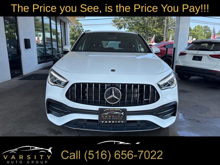 The Price you See, is the Price You Pay!!!, ONE OWNER, 19" AMG® Twin 5-Spoke Wheels, 4-Way Lumbar Support, 4-Wheel Disc Brakes, 6 Speakers, ABS brakes, Adaptive suspension, Air Conditioning, Alloy wheels, AM/FM radio, Apple CarPlay®/Android Auto®, Automatic temperature control, Brake assist, Bumpers: body-color, Child-Seat-Sensing Airbag, Delay-off headlights, Driver door bin, Driver vanity mirror, Dual front impact airbags, Dual front side impact airbags, Electronic Stability Control, Emergency communication system: eCall Emergency System and Active Emergency Stop Assist, Extended Mobility Tires, Four wheel independent suspension, Front Bucket Seats, Front Center Armrest, Front dual zone A/C, Front fog lights, Front reading lights, Front Sport Seats, Fully automatic headlights, Heated door mirrors, Knee airbag, Low tire pressure warning, Memory seat, Occupant sensing airbag, Outside temperature display, Overhead airbag, Overhead console, Panic alarm, Passenger door bin, Passenger vanity mirror, Power door mirrors, Power driver seat, Power Driver Seat w/Memory, Power Liftgate, Power passenger seat, Power Passenger Seat w/Memory, Power steering, Power windows, Radio data system, Rear reading lights, Remote keyless entry, Roof rack: rails only, Seat Comfort Package, Security system, Speed-sensing steering, Split folding rear seat, Spoiler, Sport steering wheel, Tachometer, Telescoping steering wheel, Tilt steering wheel, Traction control. White 2022 Mercedes-Benz GLA 35 AMG 4MATIC® 4MATIC® 8-Speed Automatic I4 Odometer is 2580 miles below market average! 22/30 City/Highway MPG